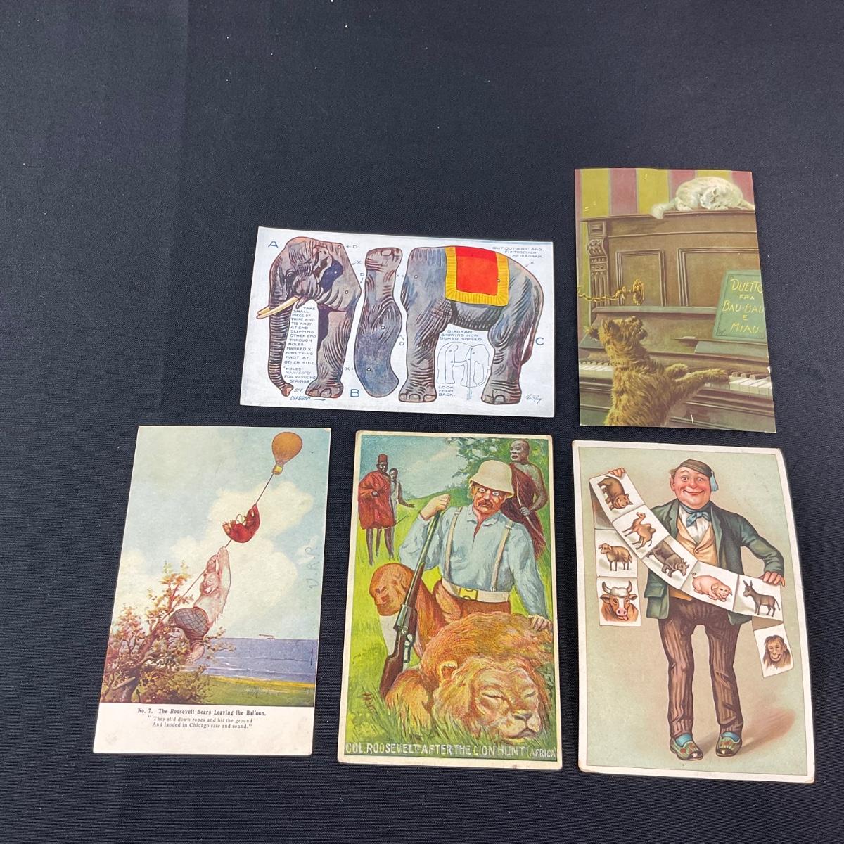 Five vintage animal related postcards. Please see photos for details and condition. Any condition statement is given as a courtesy to a client, is an opinion, and should not be treated as a statement of fact. Reference to condition written, oral or within a condition report shall not be regarded as a full account of condition and may not include all defects, alterations, or restorations. Absence of a condition report does not imply a lot is flawless or lacking imperfections or damage. Katherine’s Auction & Appraisal Service shall have no responsibility for any error or omission. Returns shall not be accepted on the basis of condition. ::: Shipping is available on this lot. If you require shipping you must let us know at the close of the auction. We will coordinate with you after the item has been won. Shipping fees will include insurance up to or exceeding the value of all items being mailed. If you have any questions regarding this lot please contact the auctioneer either via this website, by direct email or by phone. PICK UP TIMES and other important information can be found in the TERMS and DESCRIPTION of the auction. Please take a look for pertinent information. Thanks!