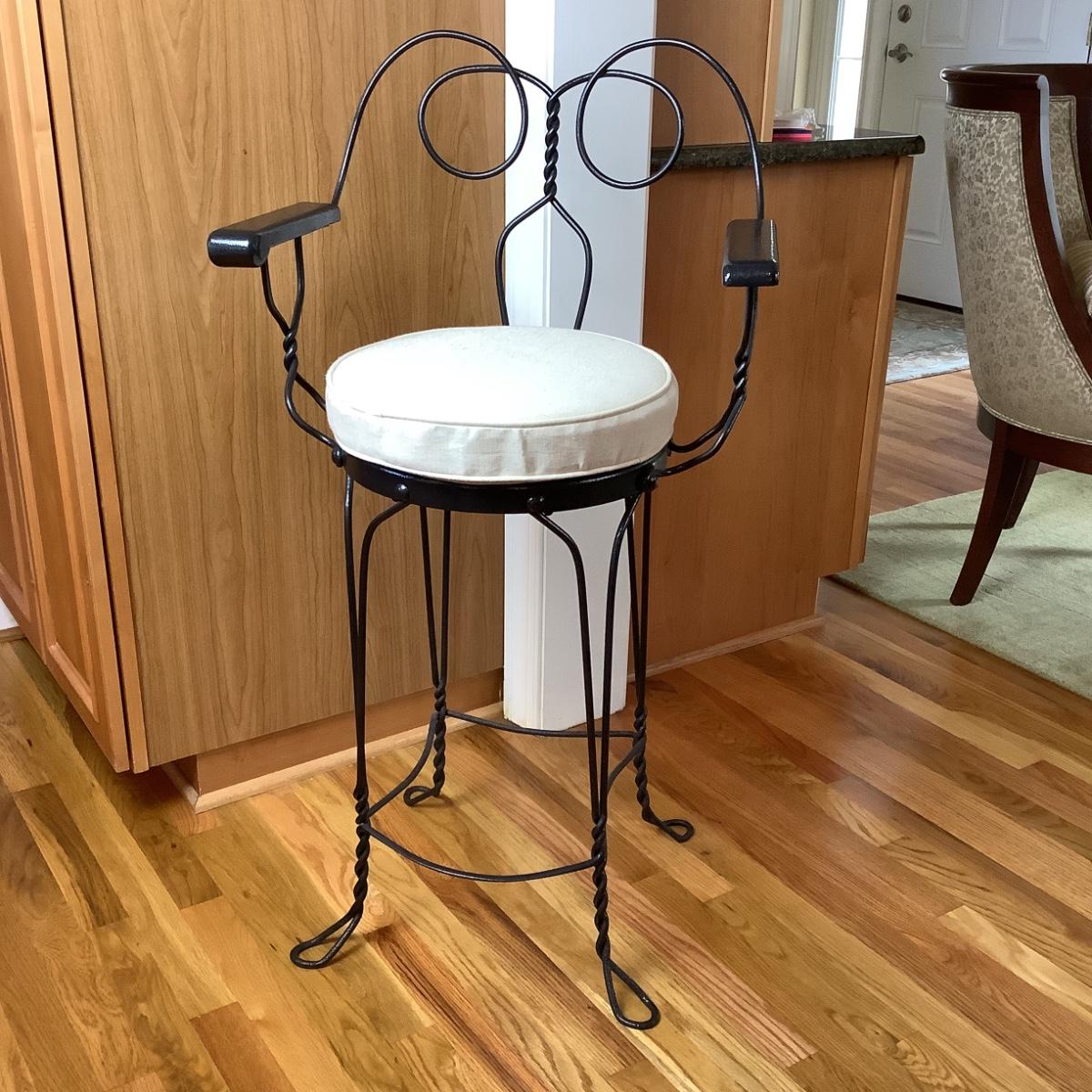 1192 Vintage Black Wrought Iron Ice Cream Parlor Stool Arm Chair
