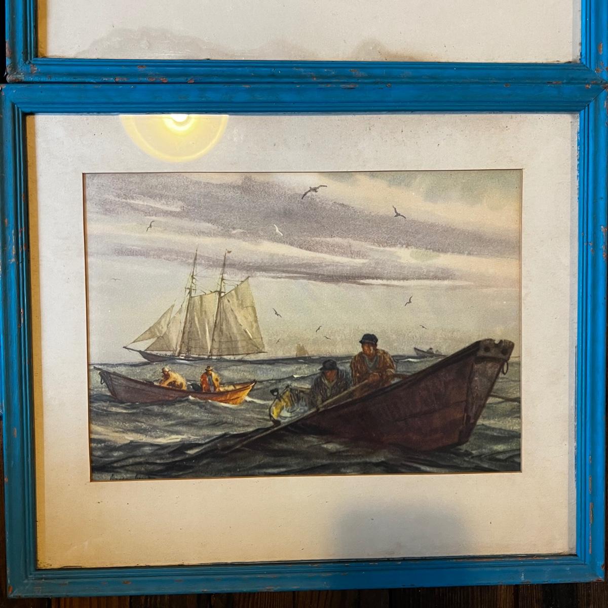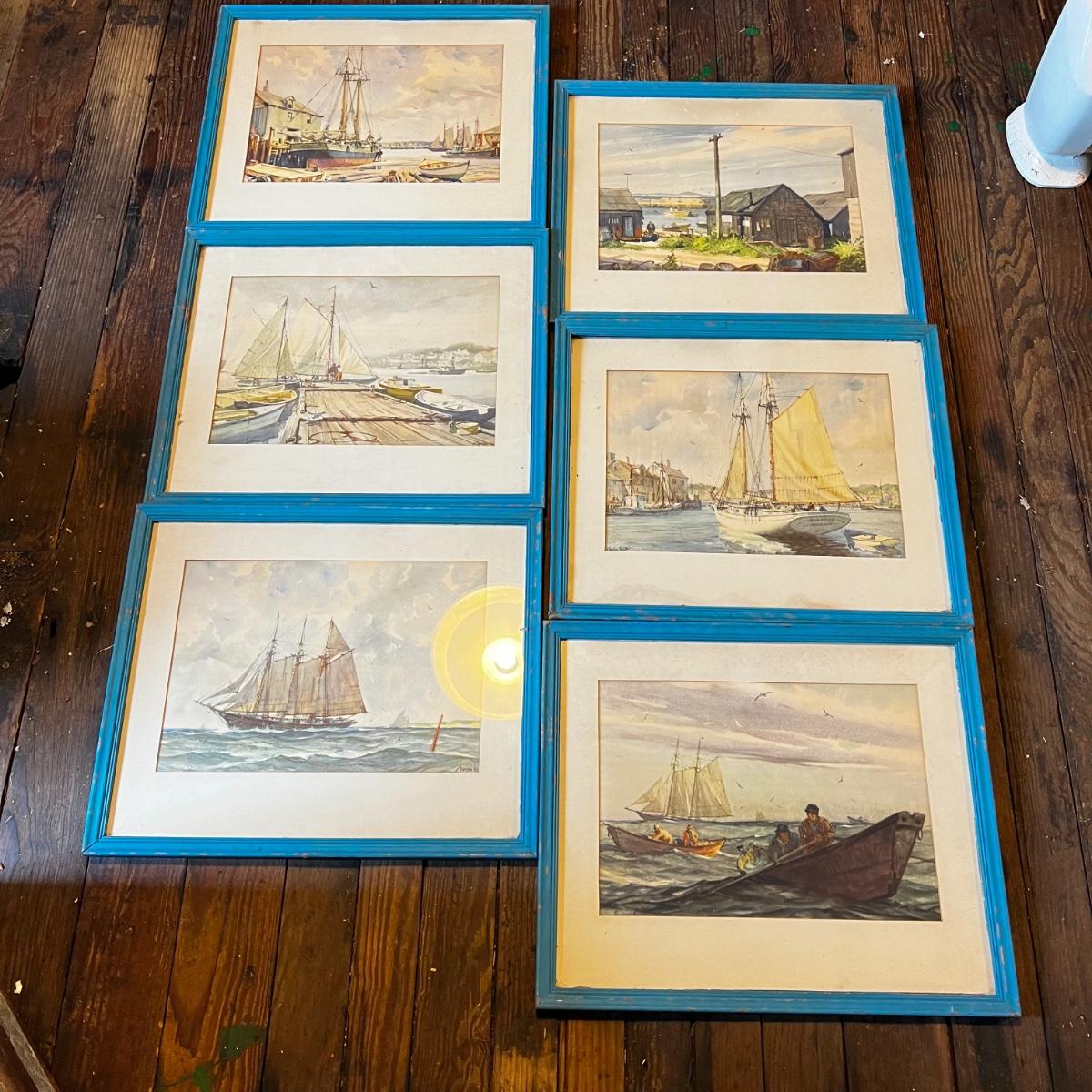 1195 Set of 6 Framed Water Color Lithographs by Gordon Grant