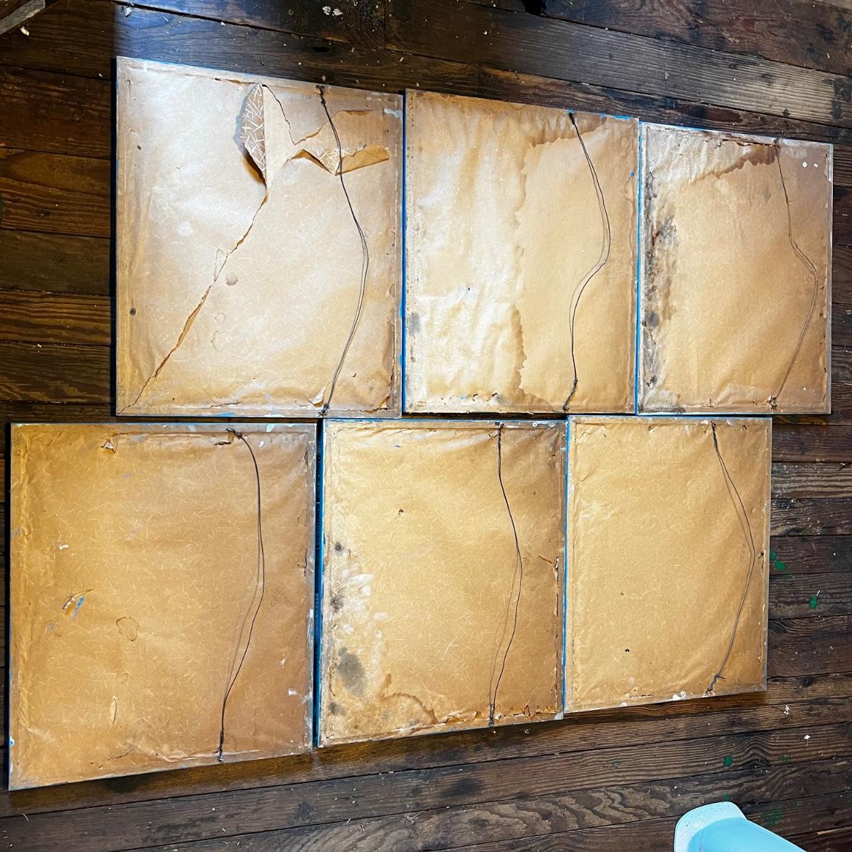 All have matching frames and are the same size. Back of the art there are a few that had gotten wet and have mildew stain shown in photos.