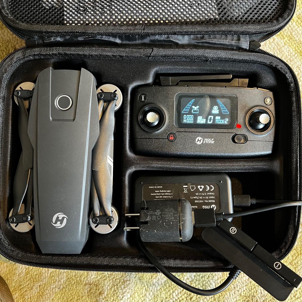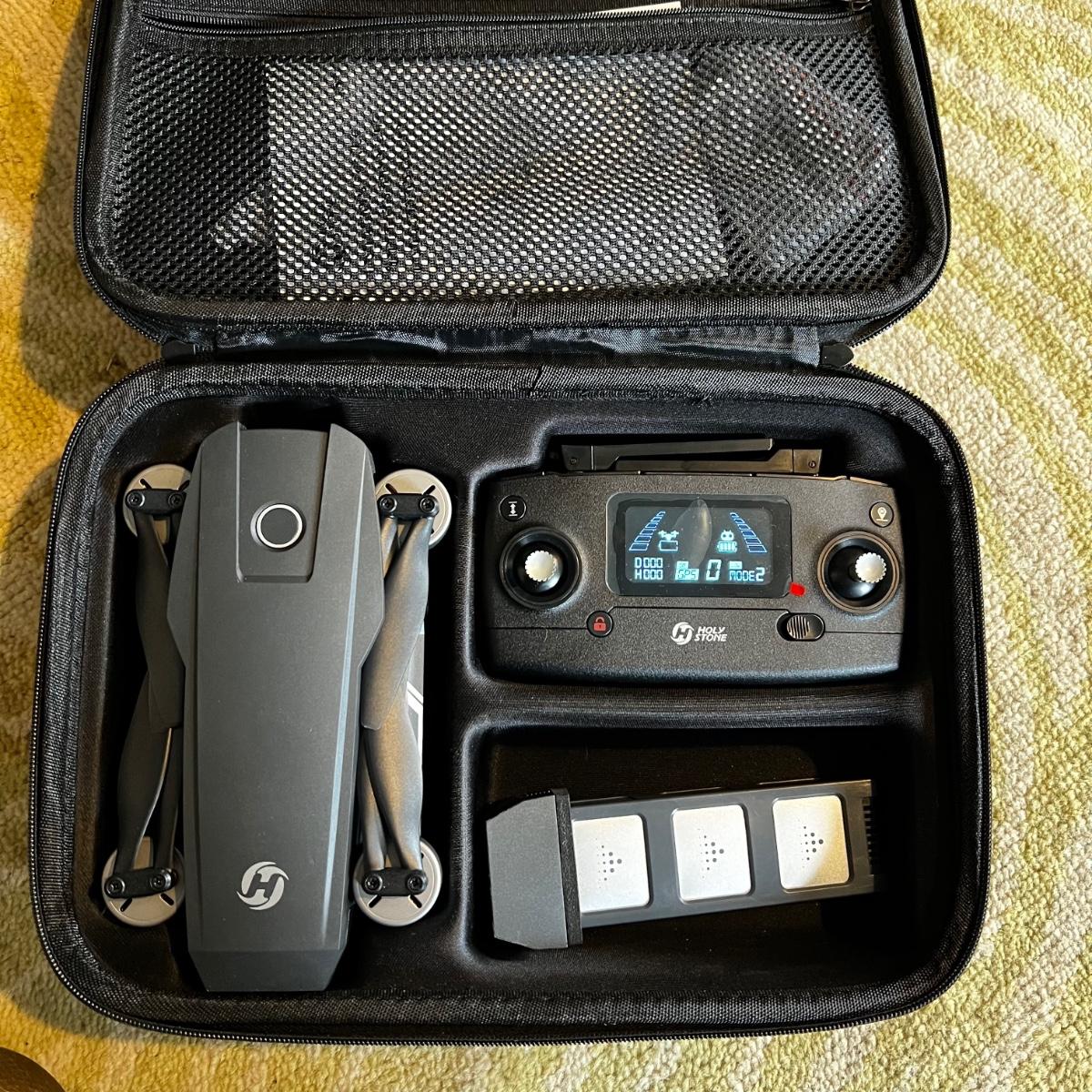 Integrated GPS, FAA-Compliant Remote ID, Long Battery Life, Image Stabilization, One Button Return. Includes two batteries, controller, charger, drone and travel case.