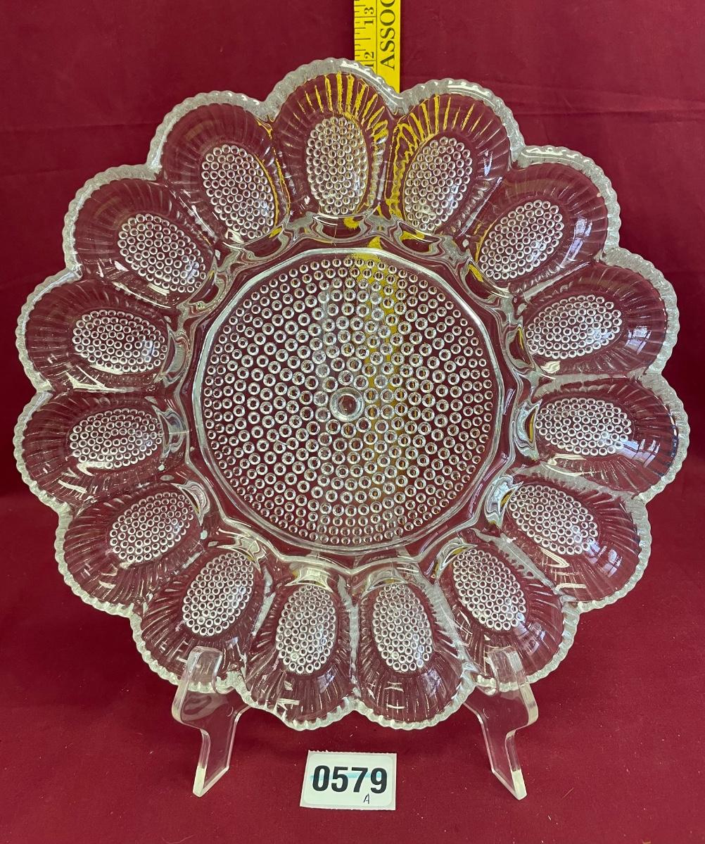 11”Indiana glass, hobnail deviled egg dish
