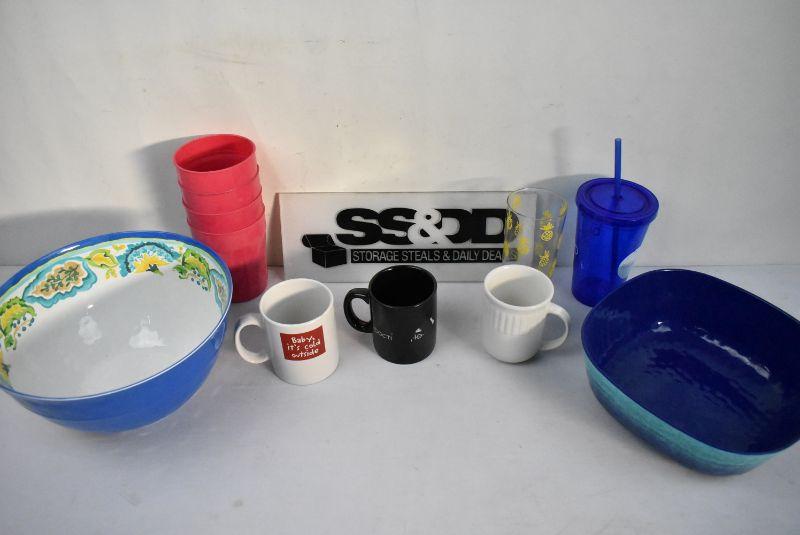 11pc Misc Kitchen Items: 2 Bowls 9 Cups