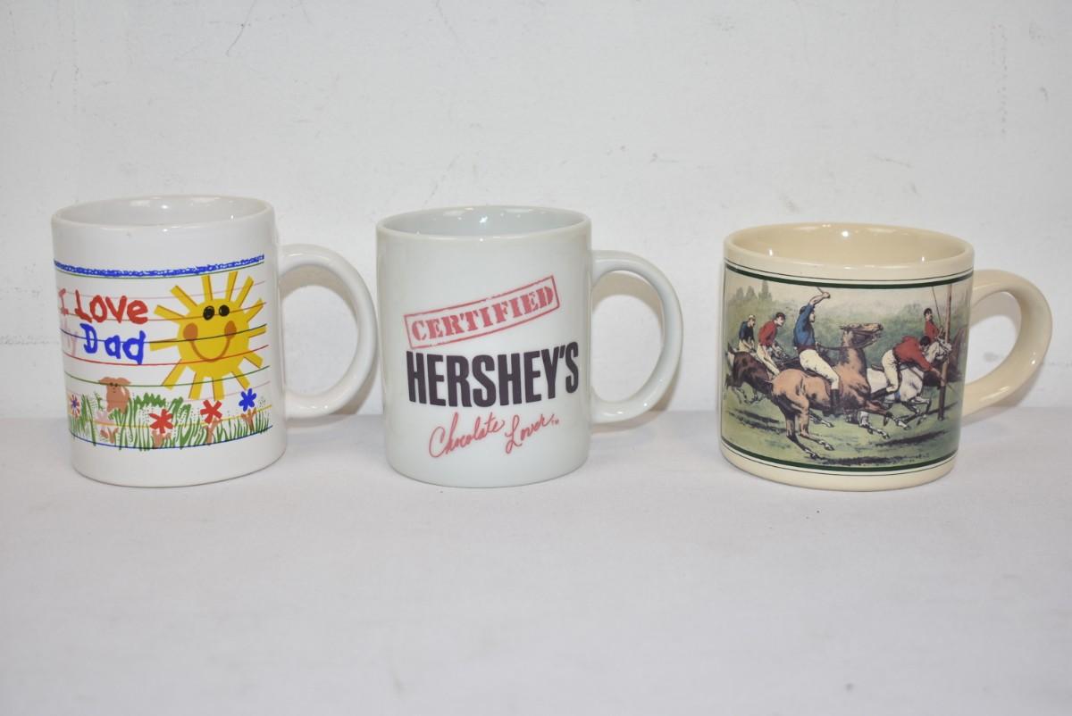 11pc Mugs of Various Designs: Hershey's, Dodge, 40s, I Love Dad, etc