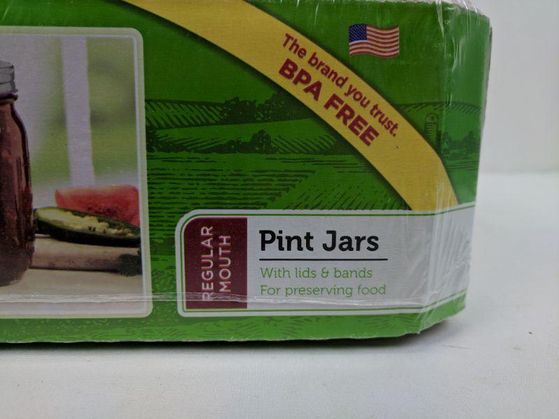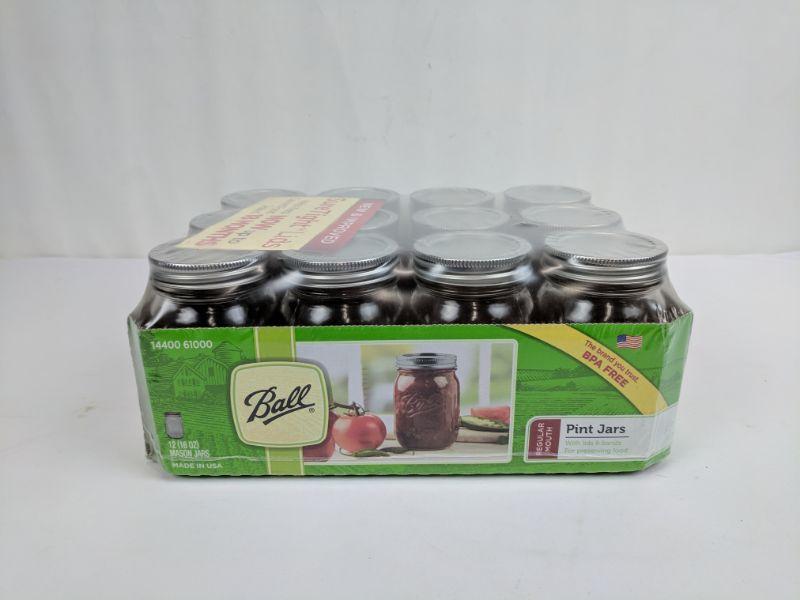 12 (16oz) Ball Pint Jars, Regular Mouth, With Lids & Bands, BPA Free - New