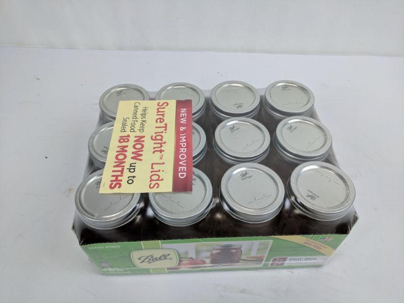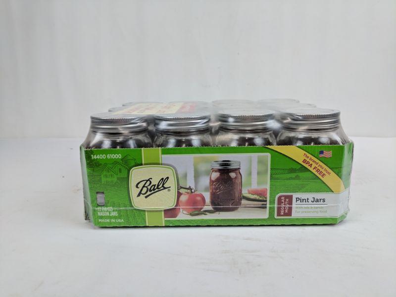 12 (16oz) Pint Ball Jars, Regular Mouth, BPA Free - New