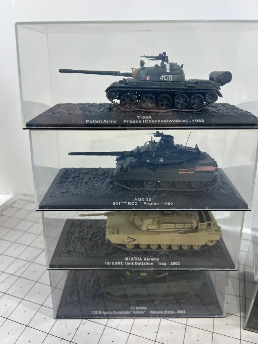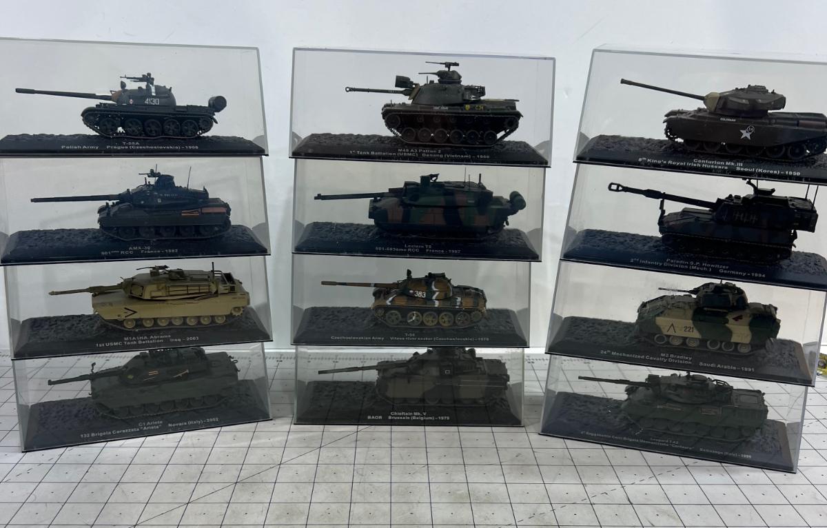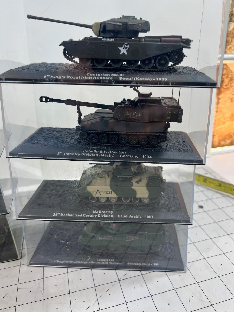 (12) 1970's-'90's Battle Tanks and Armor Vehicles in Plastic Cases