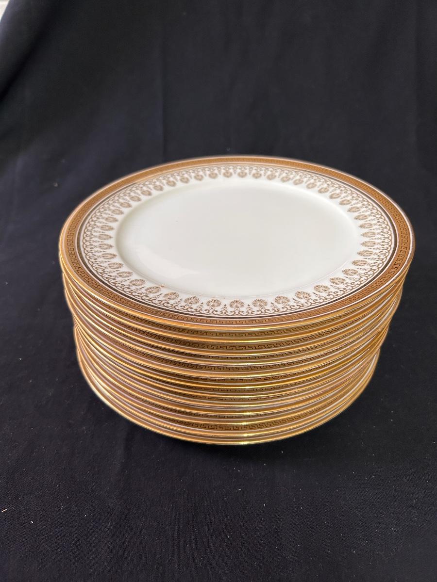 12 Vtg Royal Cauldon Ltd England Bone China Plates H1640 Gold Greek Key