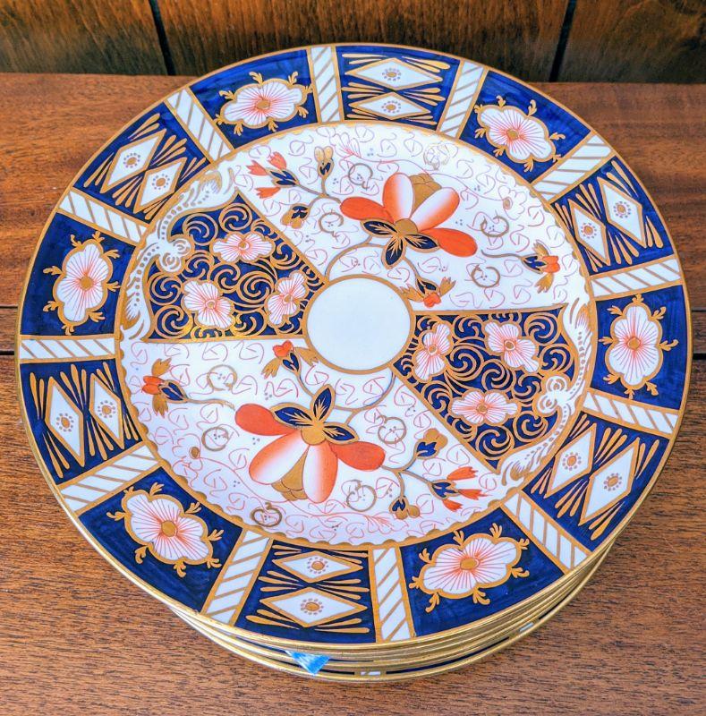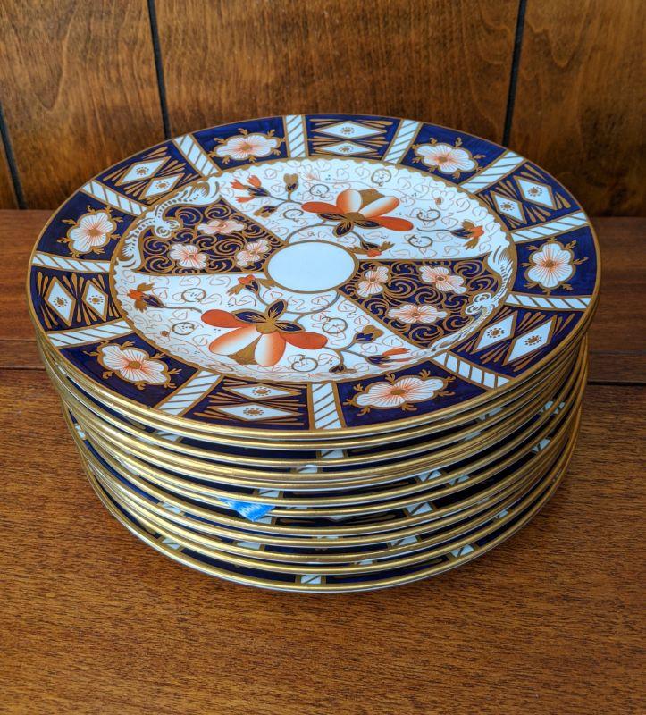 12 antique Royal Crown Derby Imari 2451 Salad Plates 8 1/4"