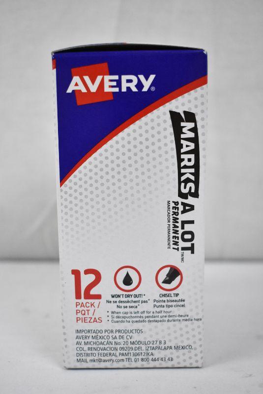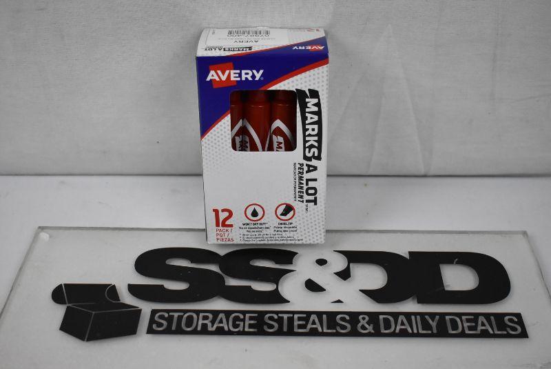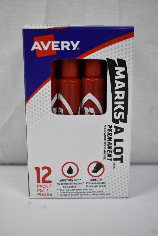 12 Avery Marks-A-Lot Regular Desk-Style Permanent Marker, Chisel Tip, Red - New