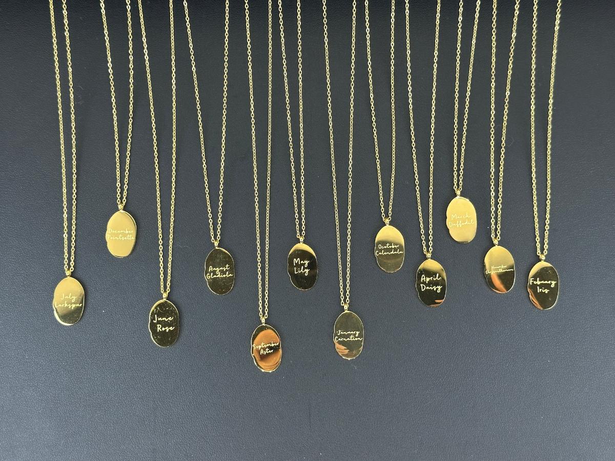1. Birth Month Flower Collection Necklaces 12 Months. This is not real gold; it is a gold-colored piece matched to an 18K tone.