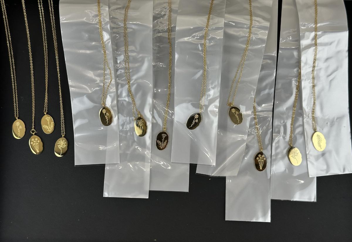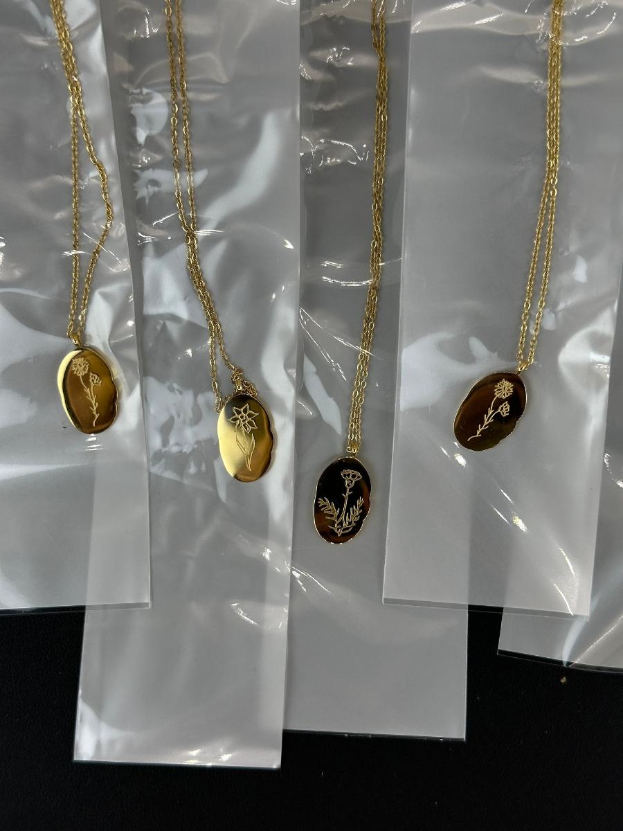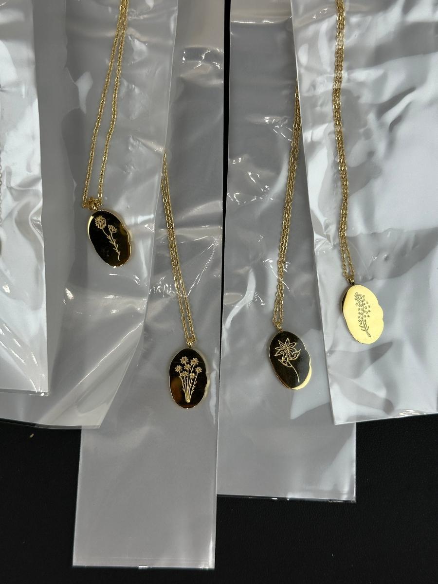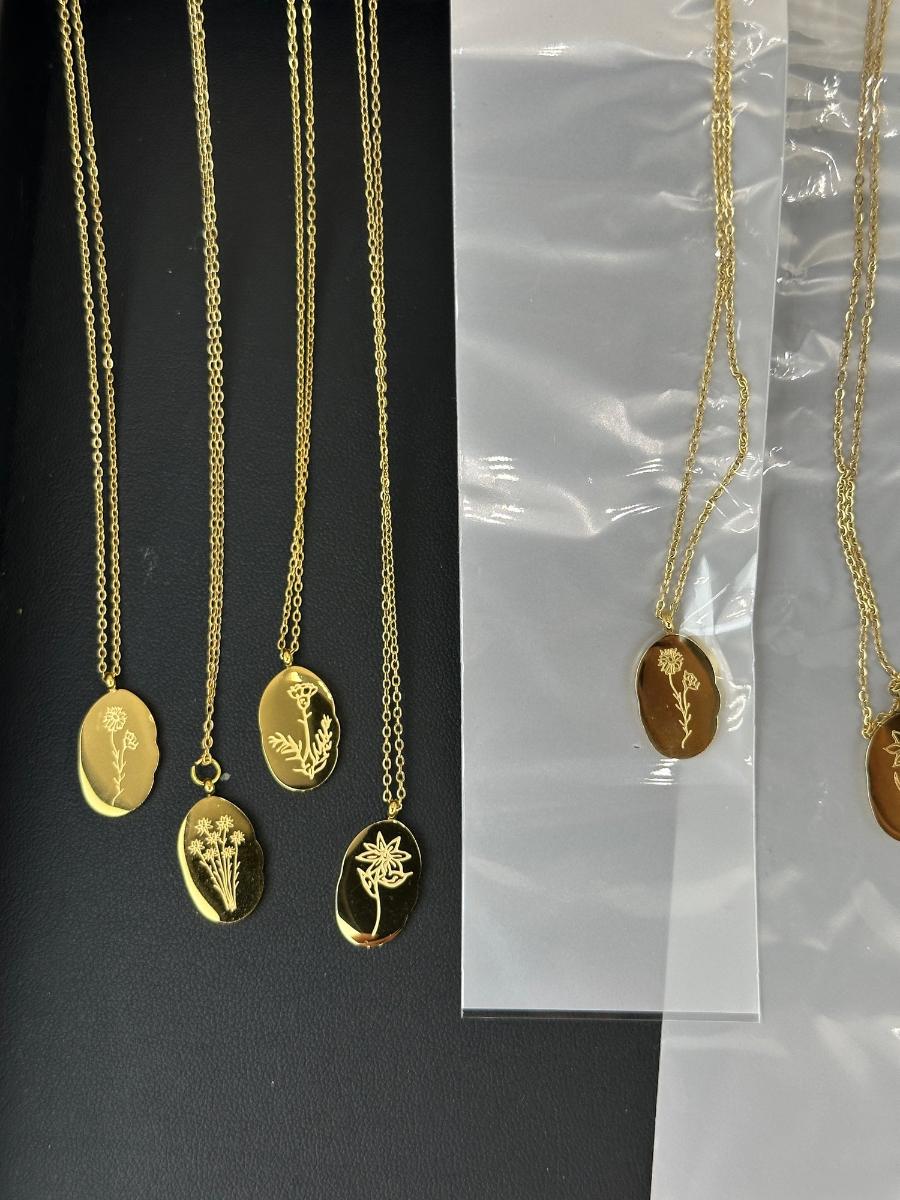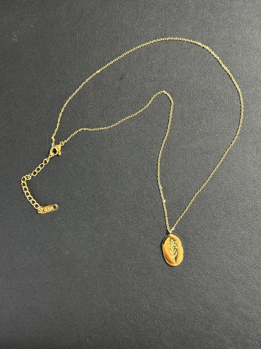 1. Birth Month Flower Collection Necklaces 12 Months MIX LOT. This is not real gold; it is a gold-colored piece matched to an 18K tone.