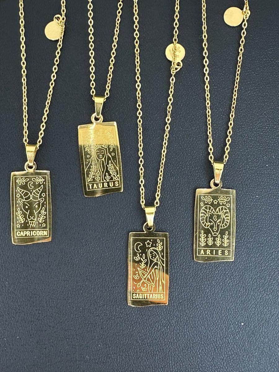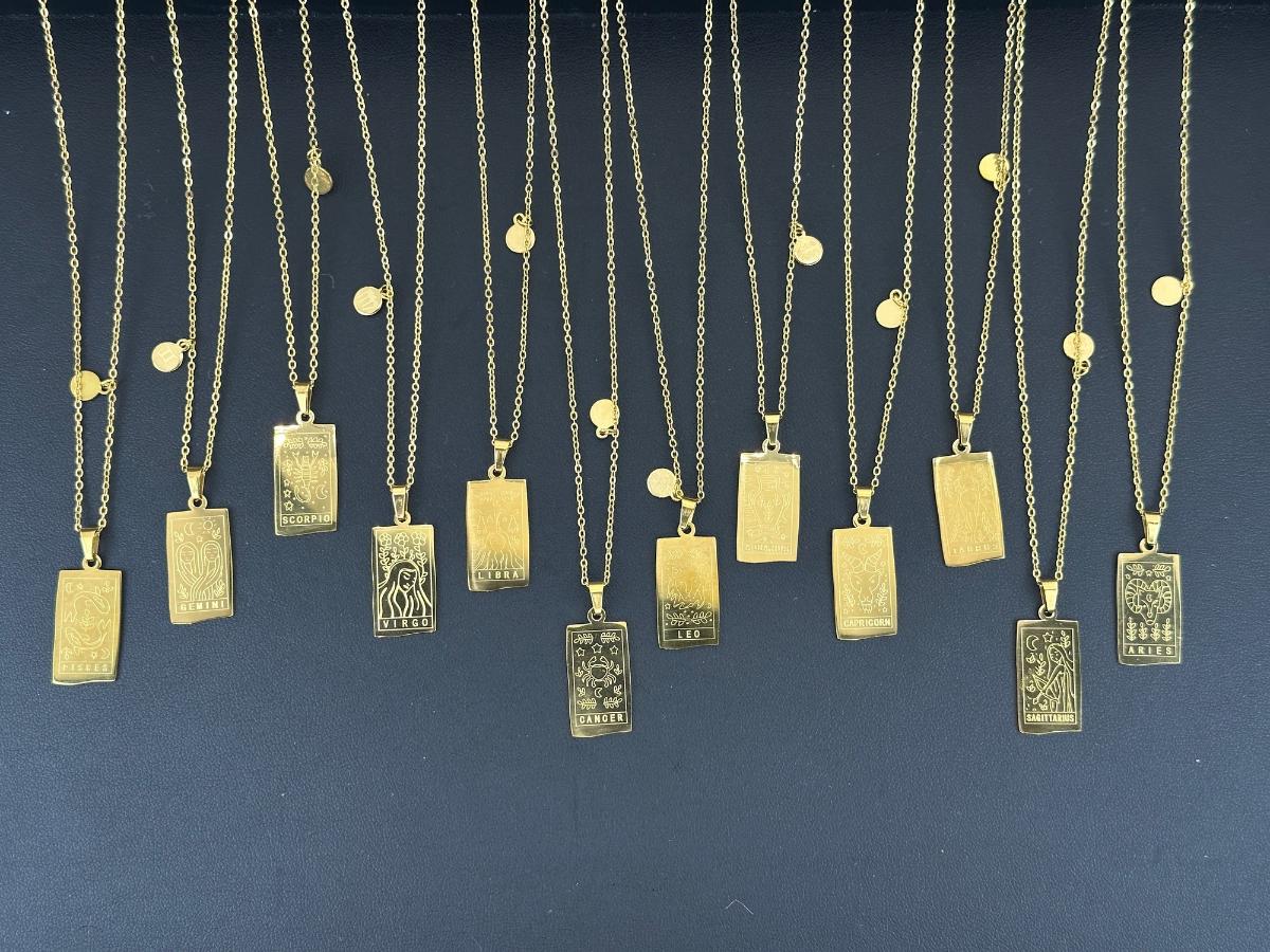 1. 12 Birth Months Zodiac Collection Necklaces . This is not real gold; it is a gold-colored piece matched to an 18K tone.