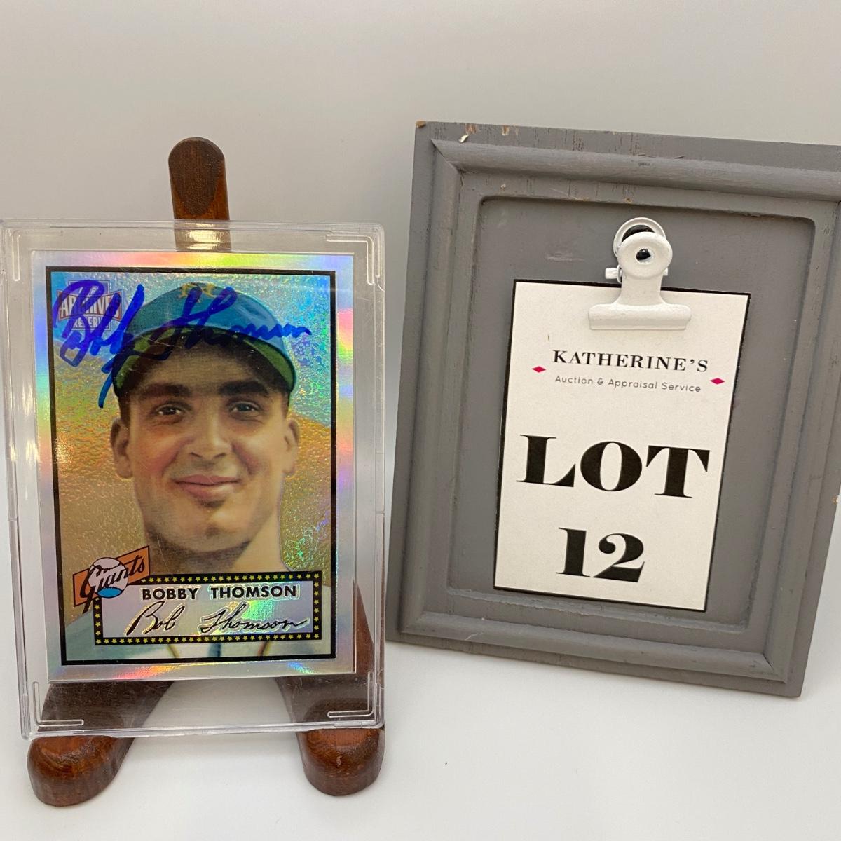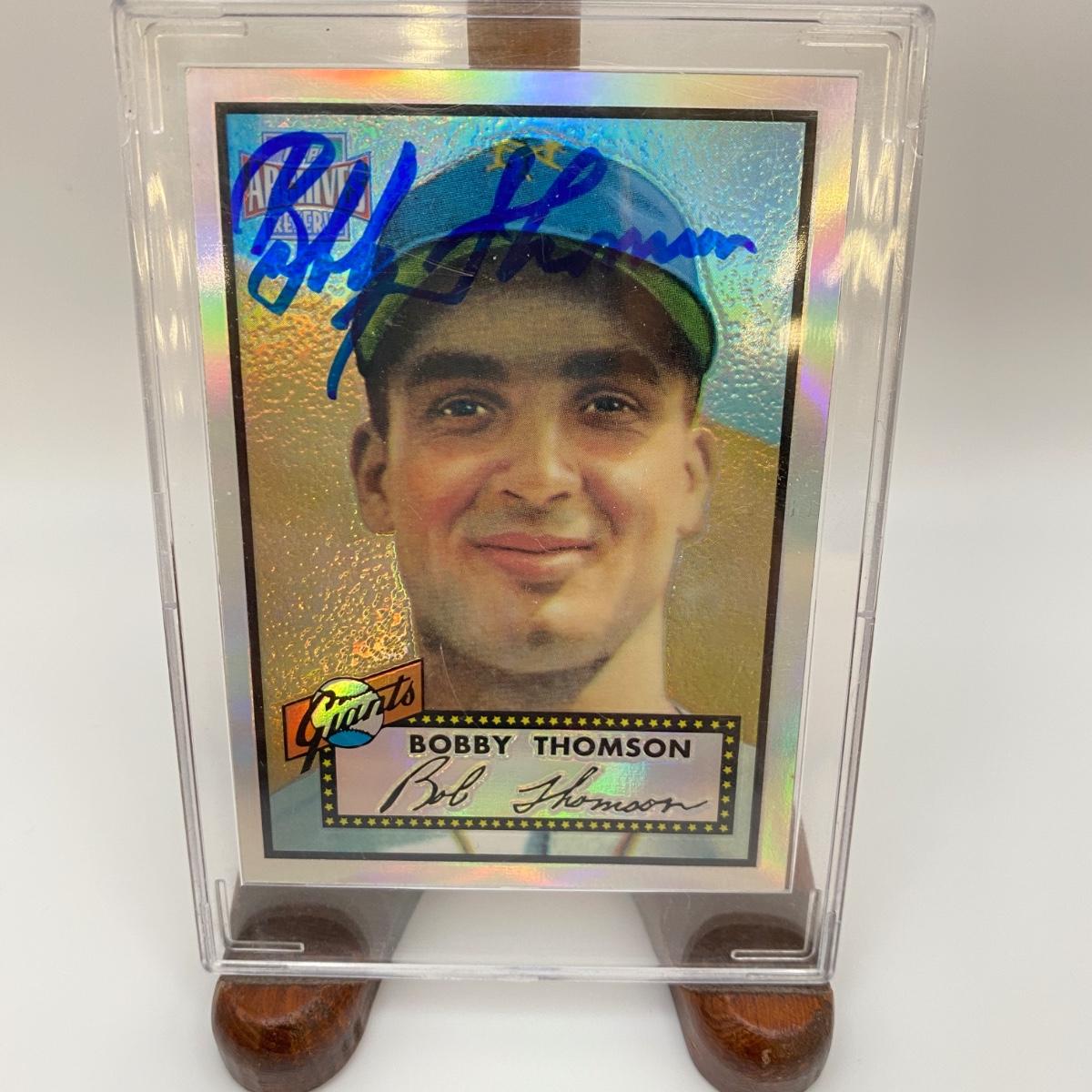 Giants Bobby Thompson holographic card Signed with no Certificate of Authenticity, item is assumed authentic however not guaranteed. Please see photos for details and condition. ::: Shipping is available on this lot. If you require shipping you must let us know at the close of the auction. We will coordinate with you after the item has been won. Shipping fees will include insurance up to or exceeding the value of all items being mailed. If you have any questions regarding this lot please contact the auctioneer either via this website, by direct email or by phone. PICK UP TIMES and other important information can be found in the TERMS and DESCRIPTION of the auction. Please take a look for pertinent information. Thanks!