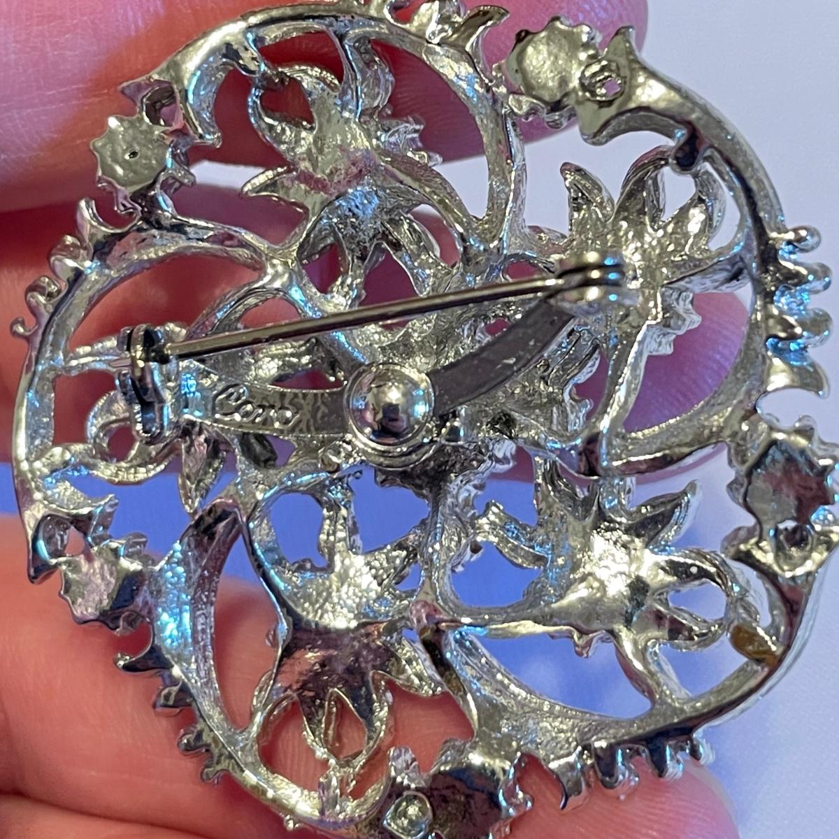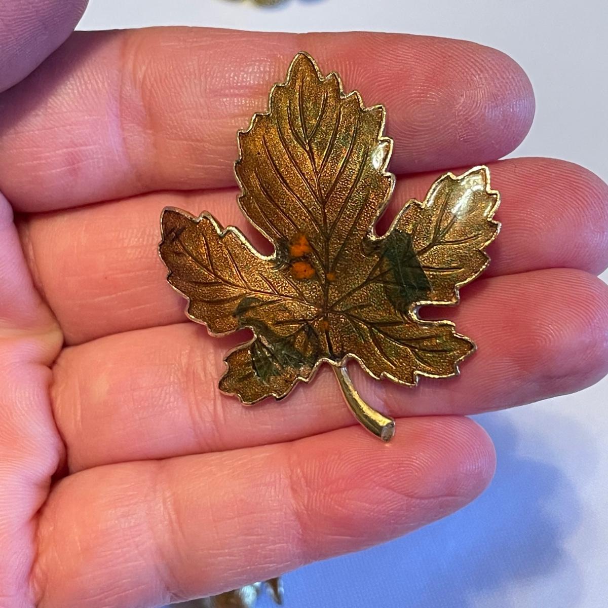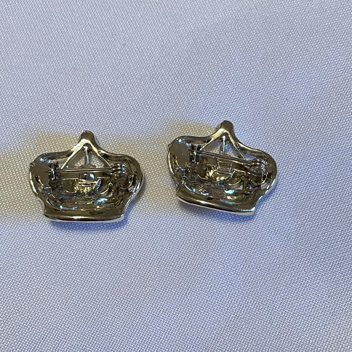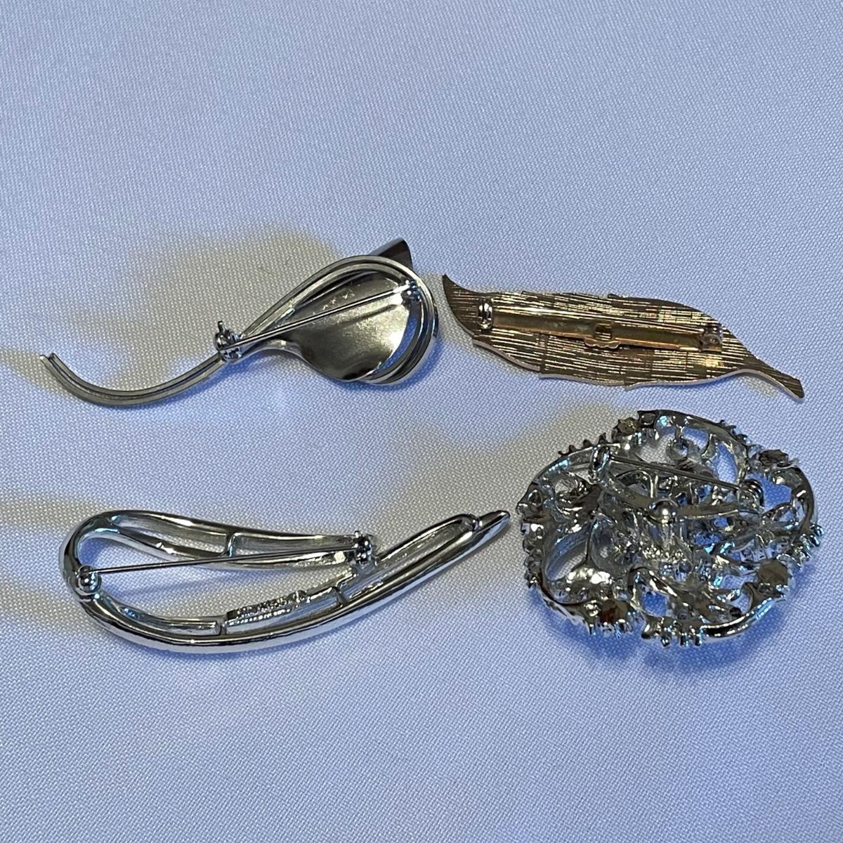 Twelve brooches to make any outfit sparkle and shine. The elephant brooch is marked Sarah, the round, silver colored brooch with blue gems is marked Cora. The two leaf brooches along with the shield on the spoon and green accents on the crowns appear to be enamel. The others are silver or gold colored metal with gems or pearly beads. All appear to be in very nice condition with working pins and latches. See images. Shipping available.