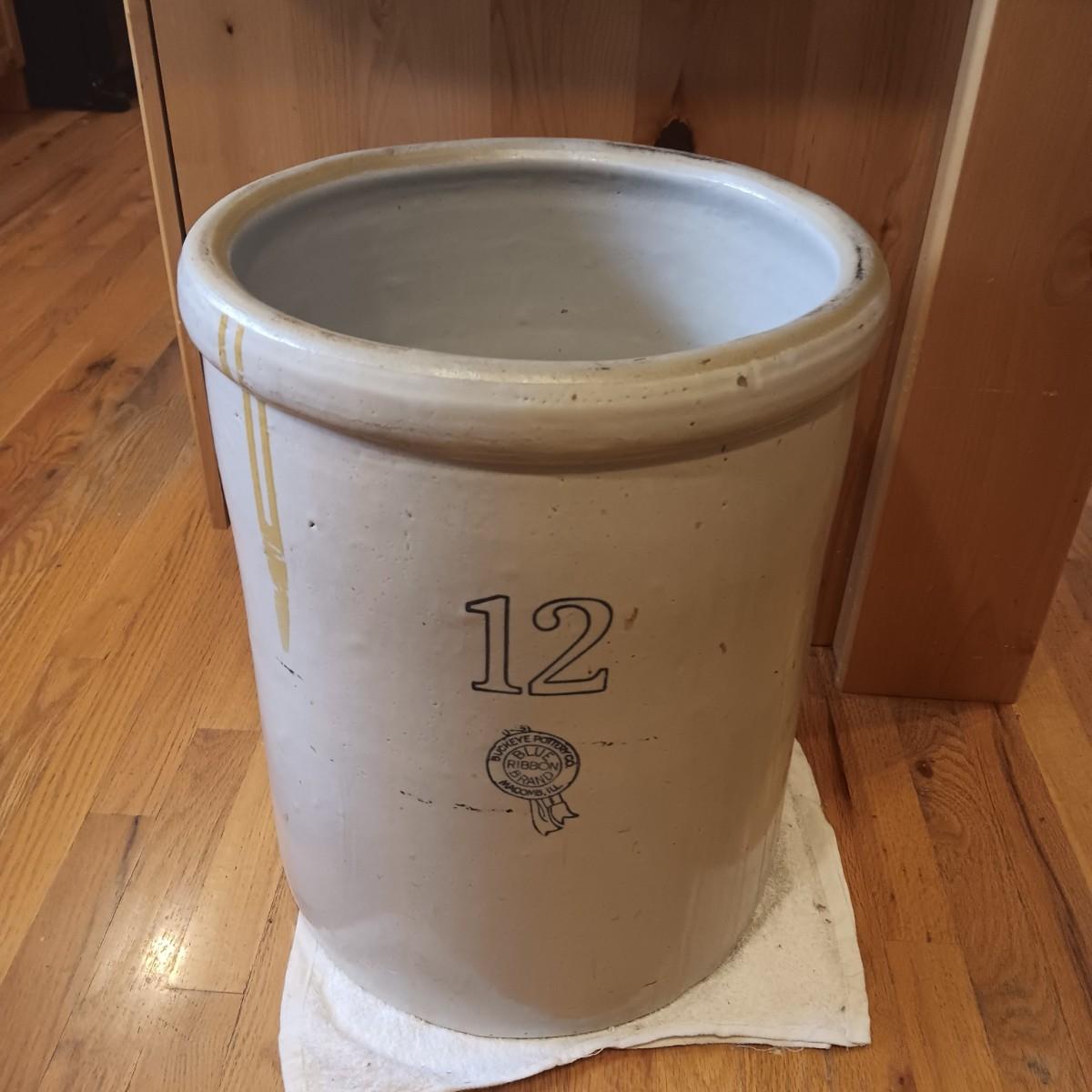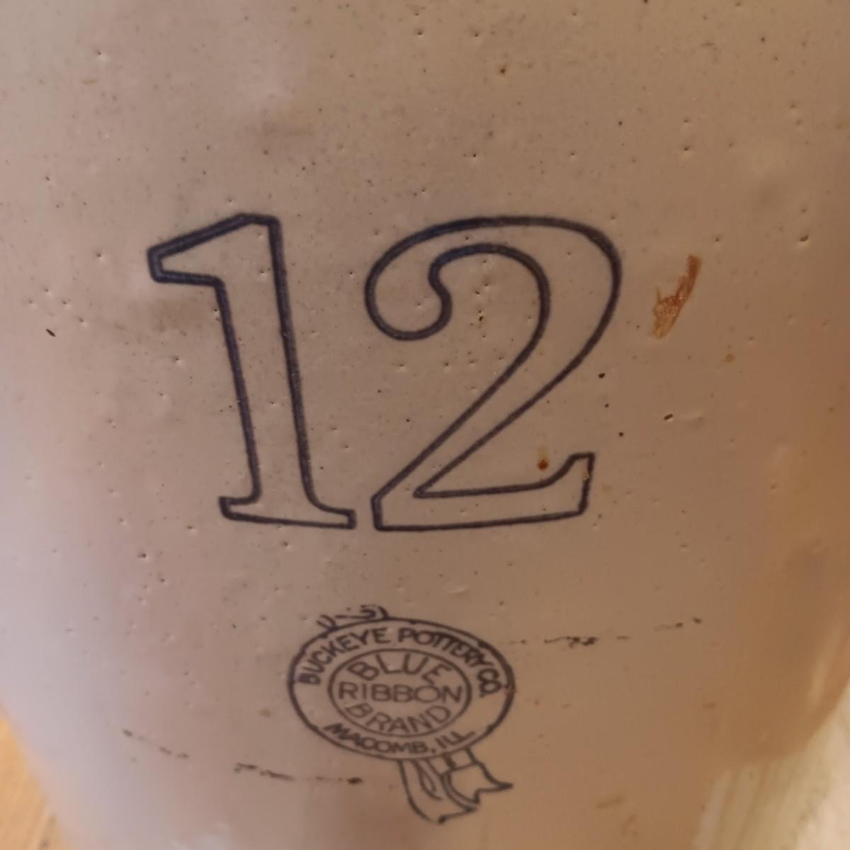 #12 BUCKEYE POTTERY CO. BLUE RIBBON BRAND CROCK IN VERY GOOD CONDITION