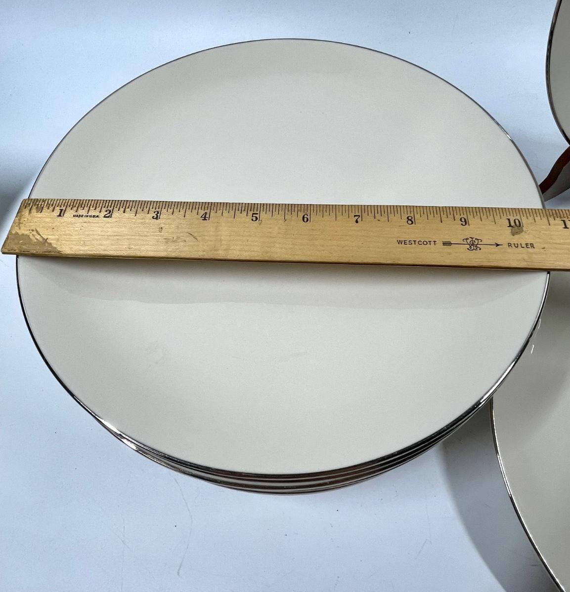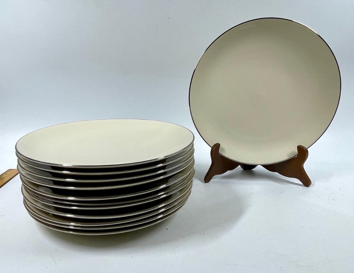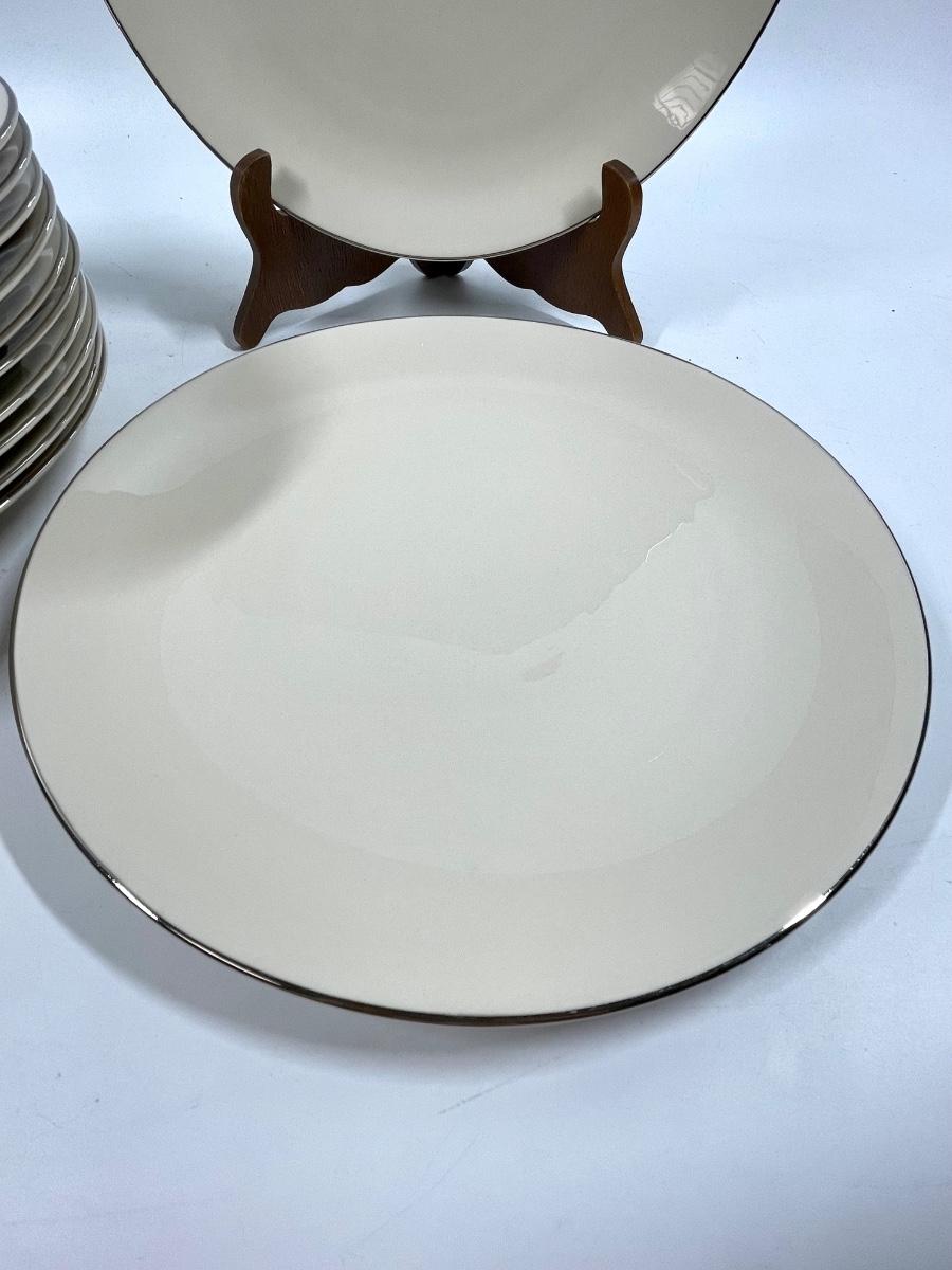 12 China Dinner Plates Ivory with Silver Edge Trim Border Unbranded
