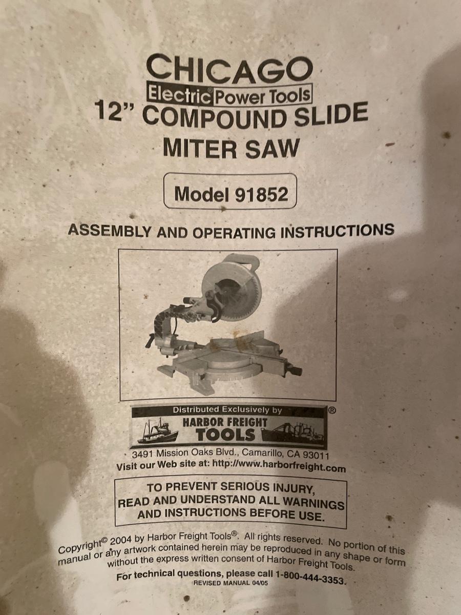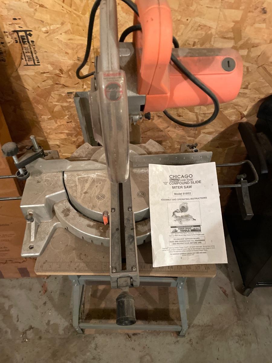 Chicago Electric Power Tools 12” Compound Slide Miter Saw Mode 91852. Tested and works.