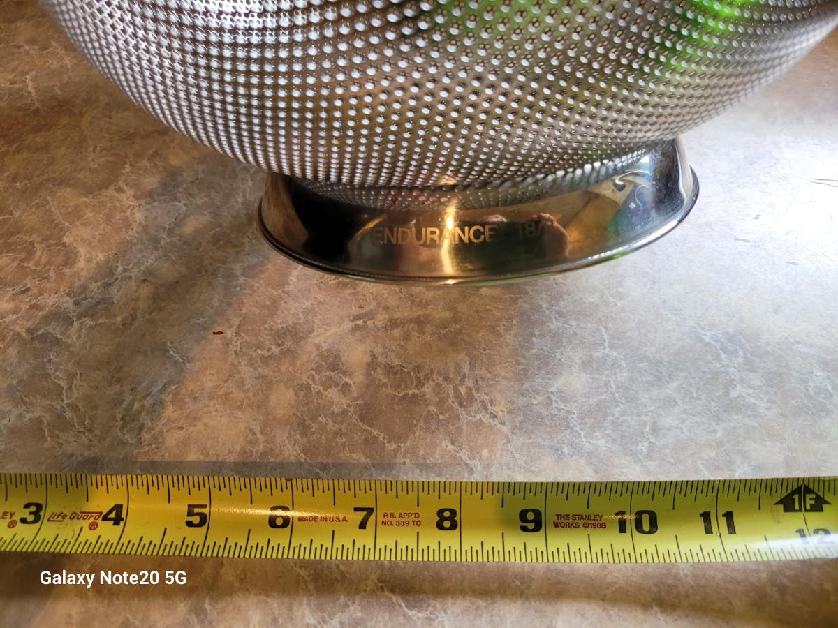 Large 12"Stainless Steel 18/8 Strainer. Marked Endurance 18/8