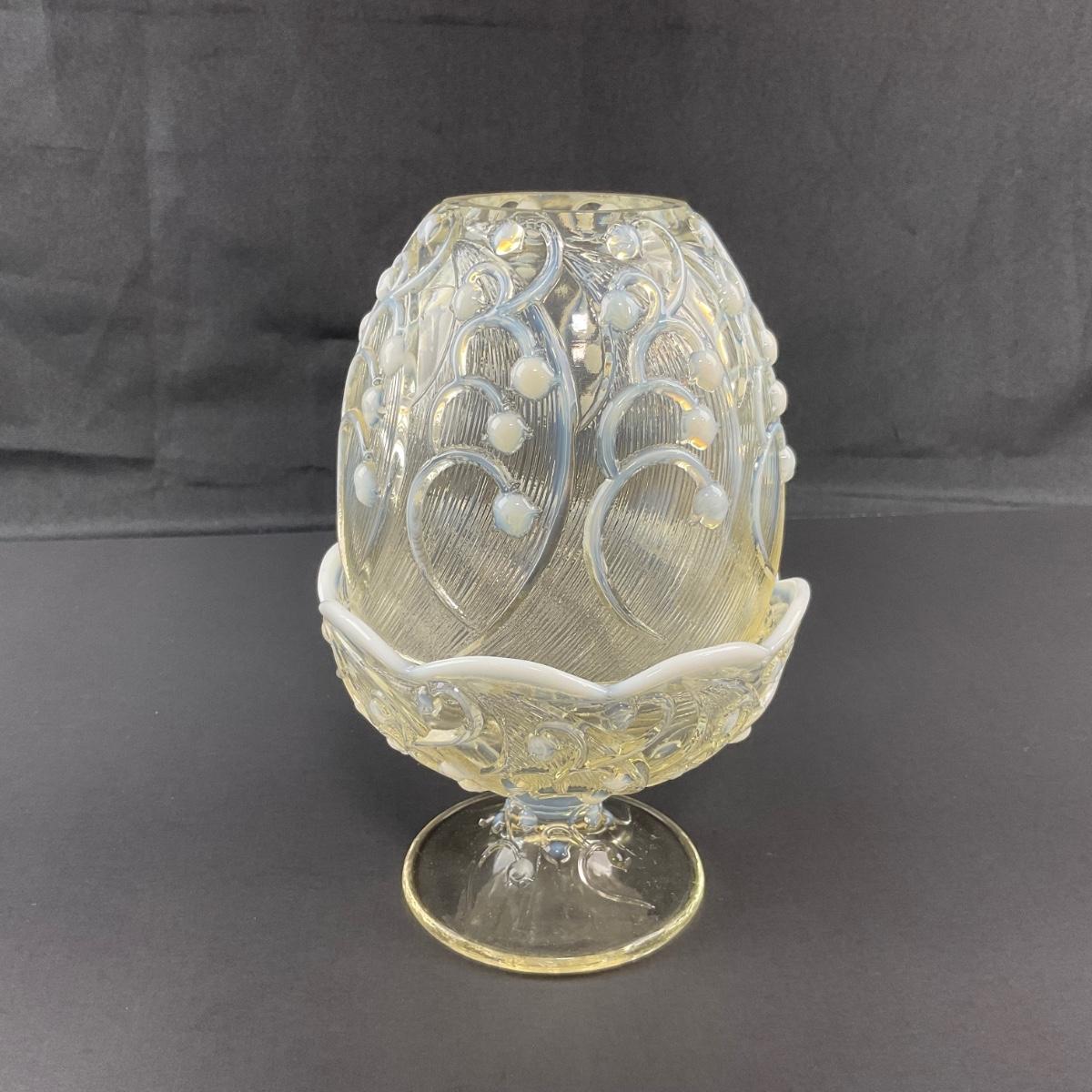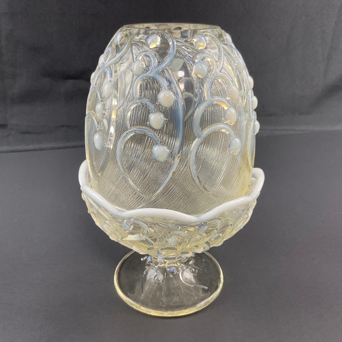 -12- FENTON | Opalescent White Lily Of The Valley Fairy Lamp | Marked