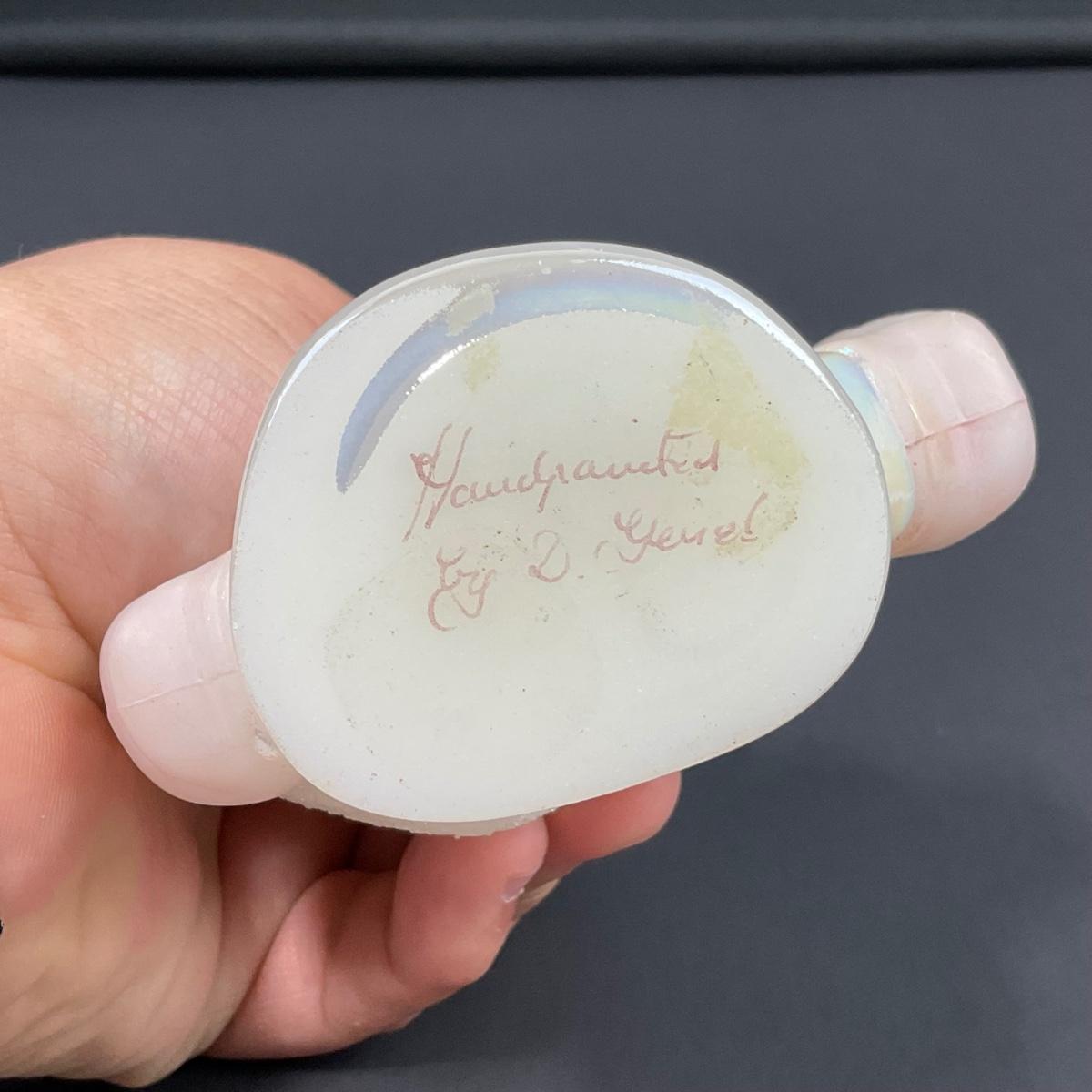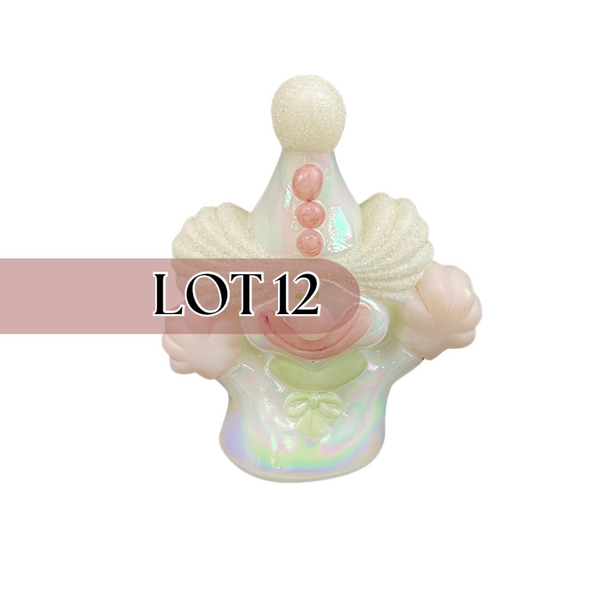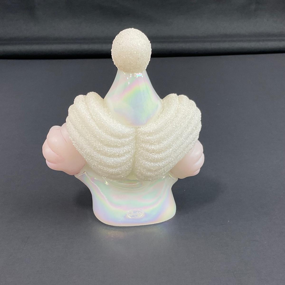 -12- FENTON | White & Pink Opalescent Frosted Hand Painted Clown | “Fools In Love”