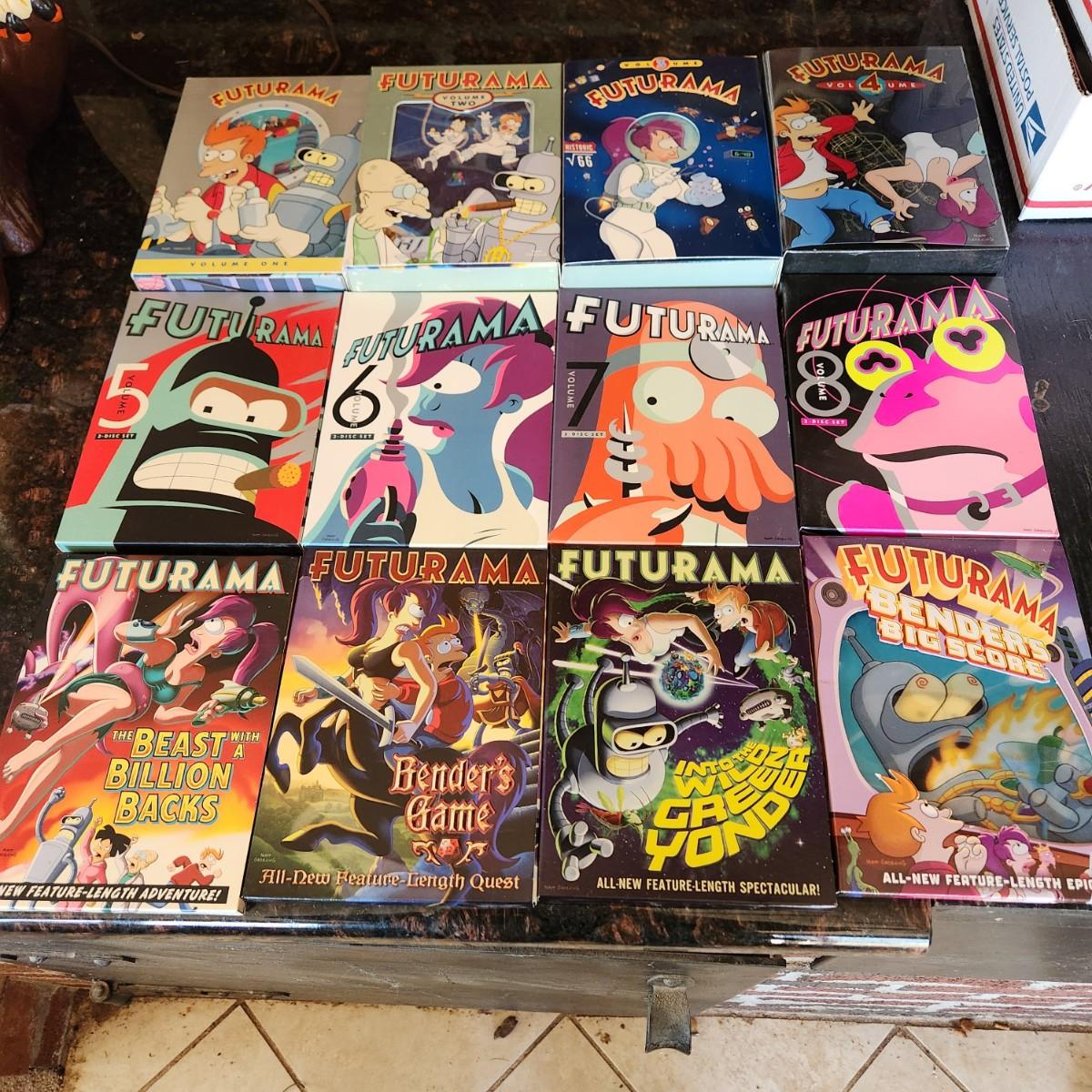 12 Futurama DVDs 1 thru 8 plus 4 movies