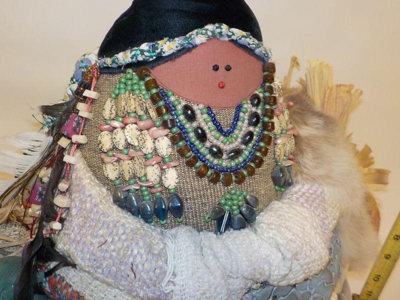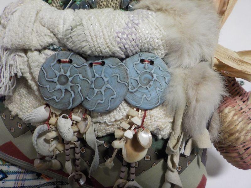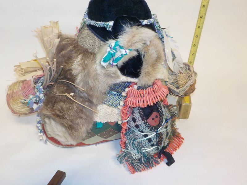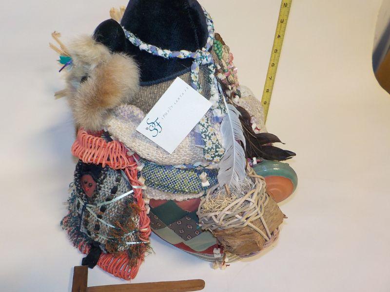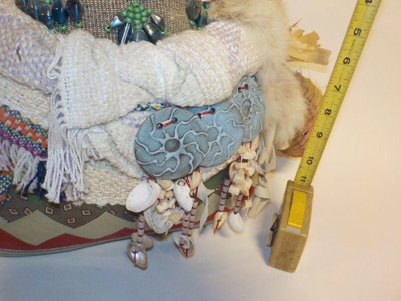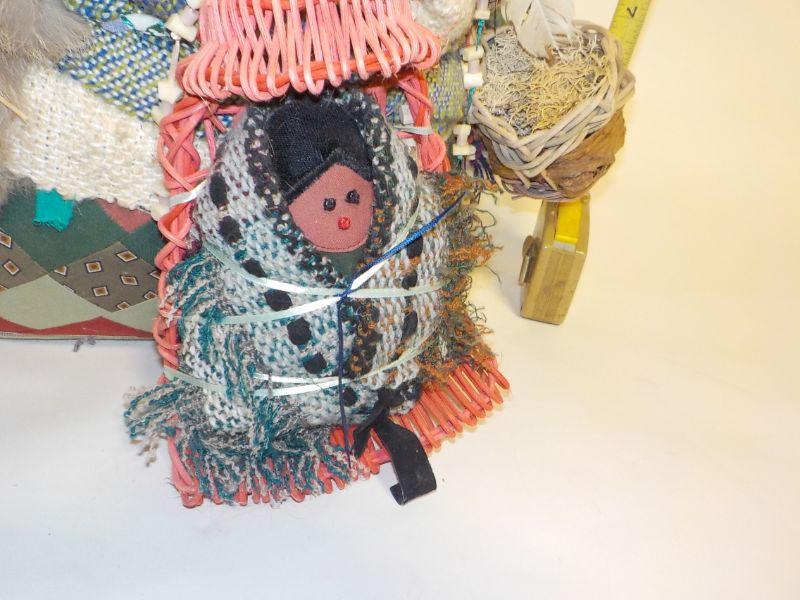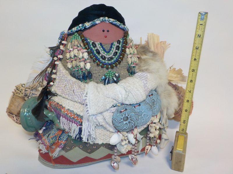 12 in x 12 in Real Native American Patricia Bonds Gaetano “Collector” doll, hand made textiles art. Signed by hand, 1984