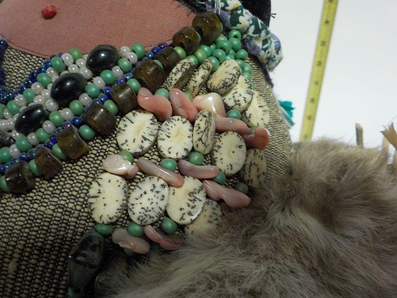 This is stunning, weighted, real fur and feathers, baby in back, ceramics in front and beads real. will not see another one.