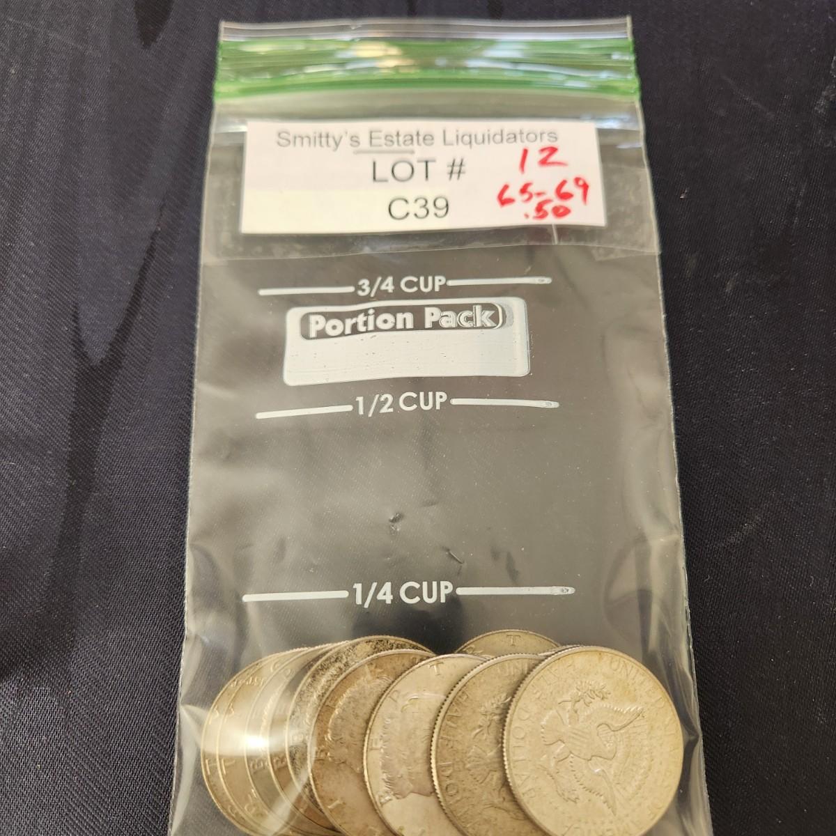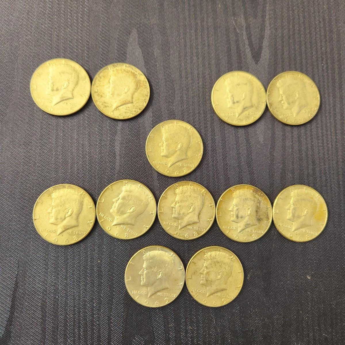 12 Kennedy Half Dollars coins 1965 to 1969