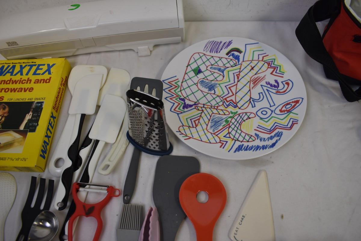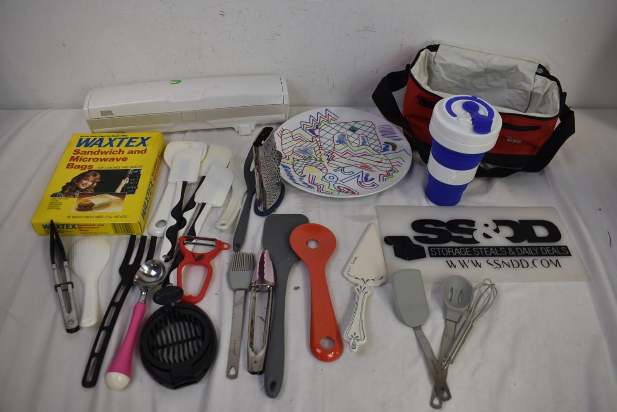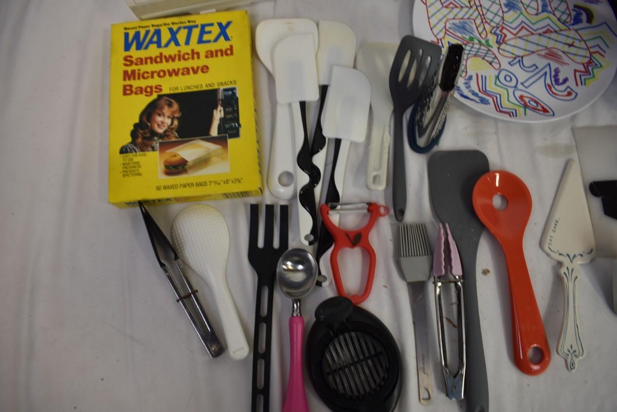 12+ Kitchen Lot: Serving and Cooking Utensils, Sandwich Bags, Lunch Box