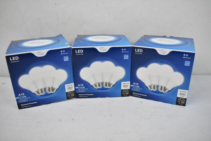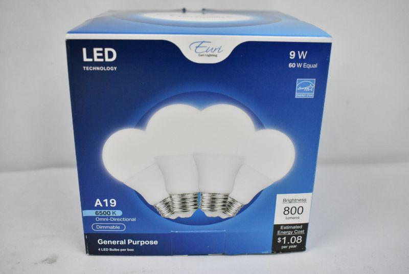 12 LED Light Bulbs, General Purpose 9W = 60W Brightness=800 Lumens, by Euri Lighting - New
