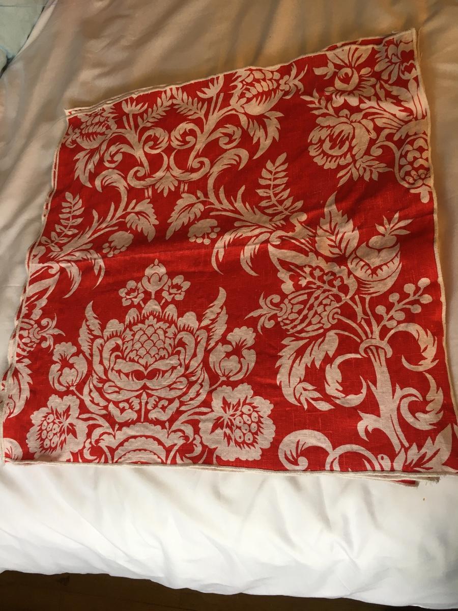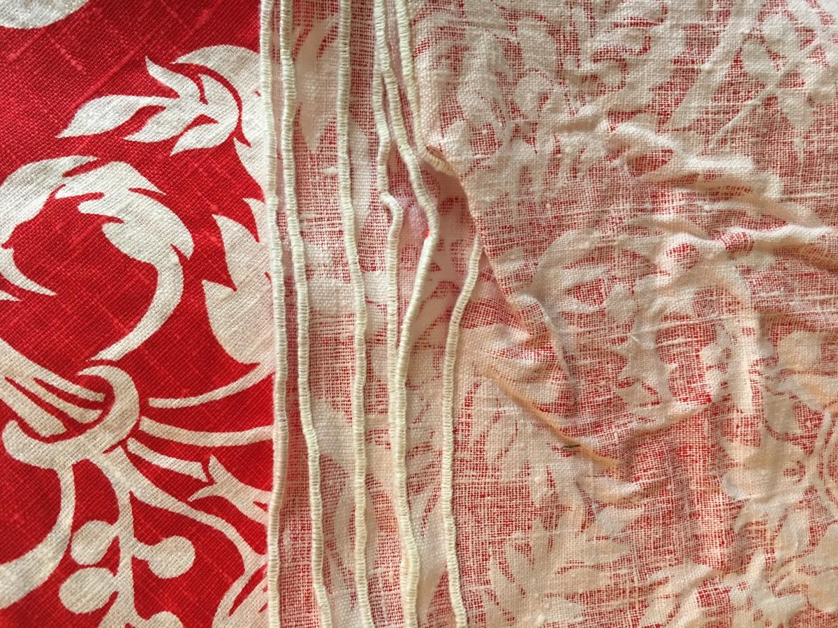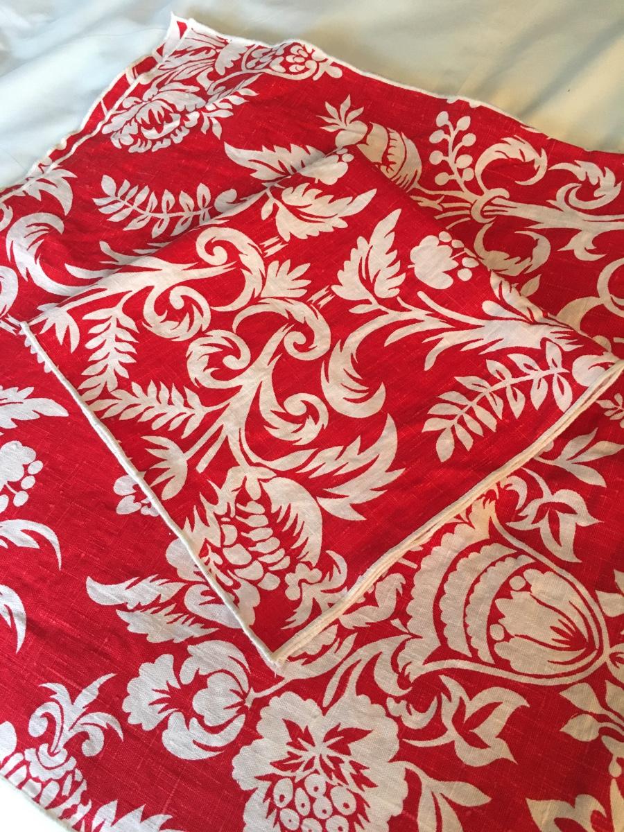 Set of 12 fun and bright patterned linen napkins in excellent condition .