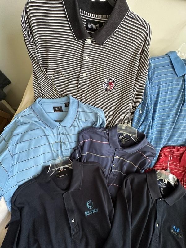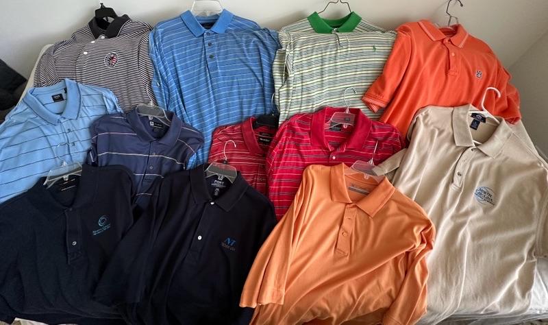 12 Mens Short Sleeve Polo Shirts XL in very good condition. Some brands include Ashworth, Izod, Bolle Golf, Jos.a. Bank, Greg Norman, Polo Golf, Tommy Hilfiger.