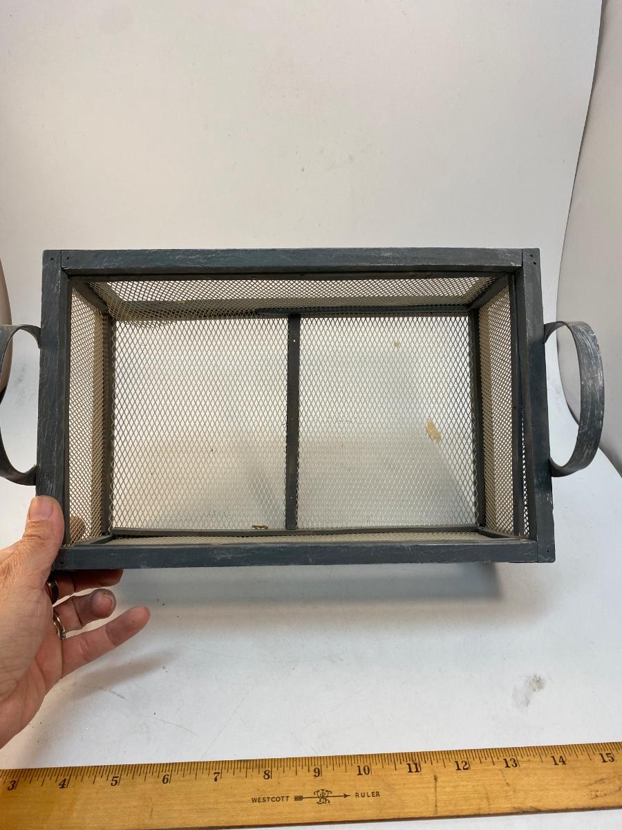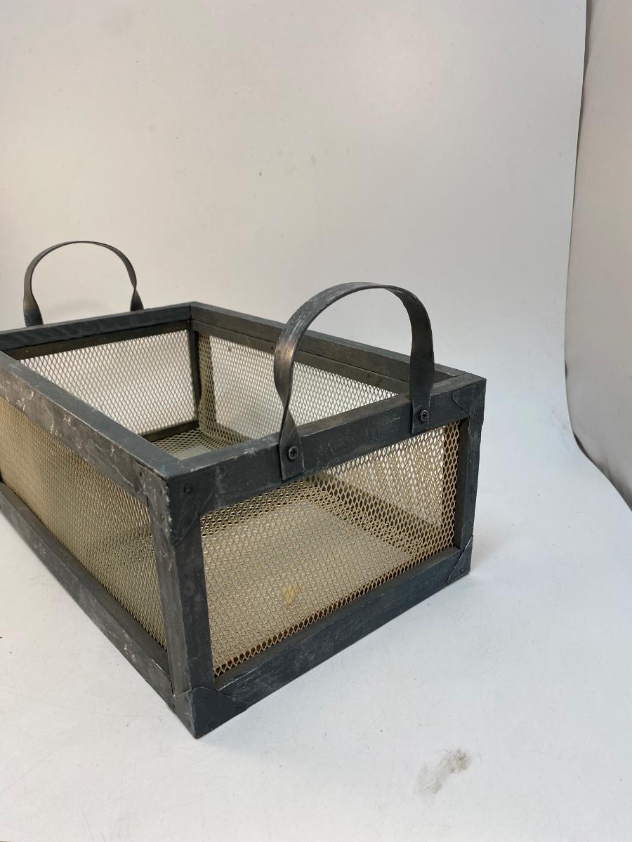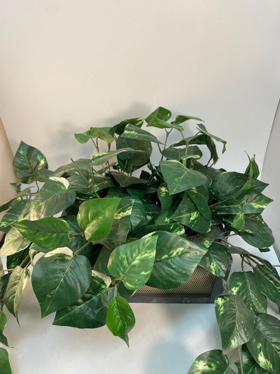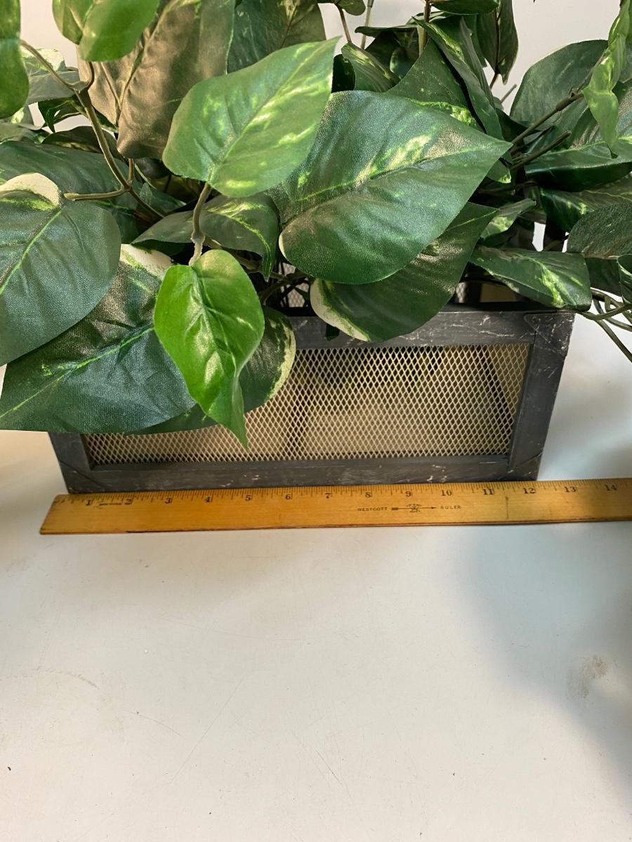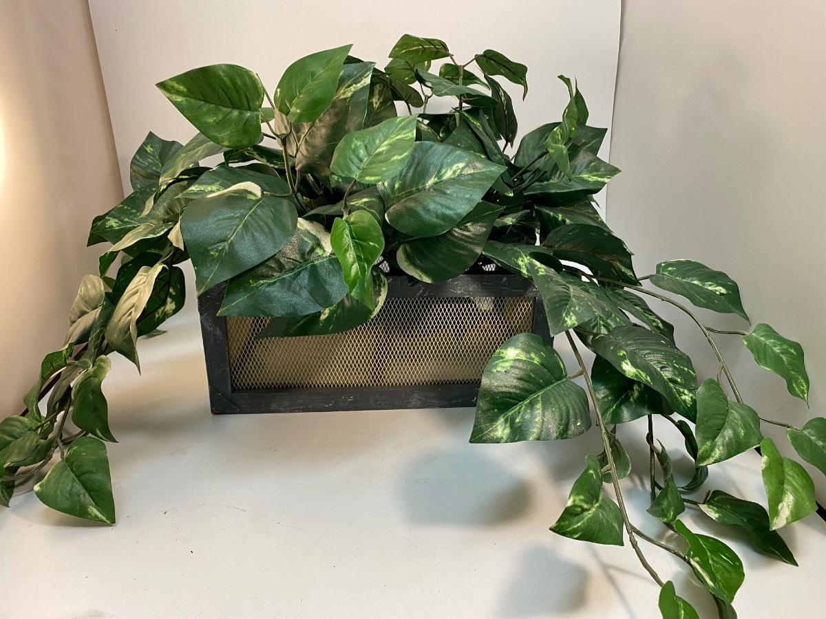 12" Mesh Side Basket Bin with Artificial Faux Plant Greenery. Both are in good condition. Plant is not attached to basket. May be dusty from display.