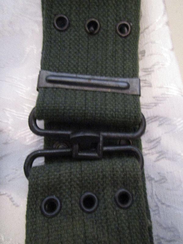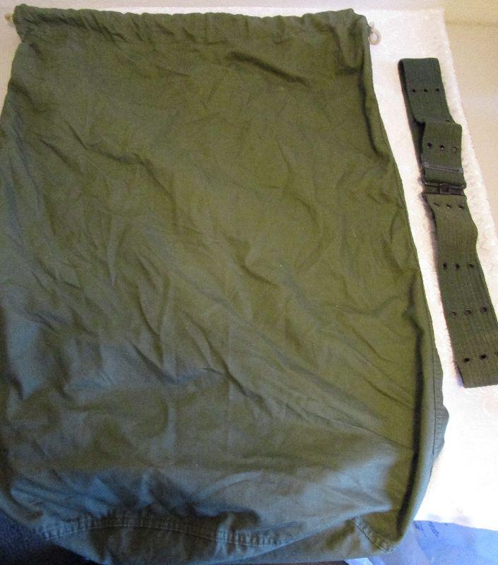 Military style belt adjustable up to 41"; Military style bag 34 deep x 44 around military style bag