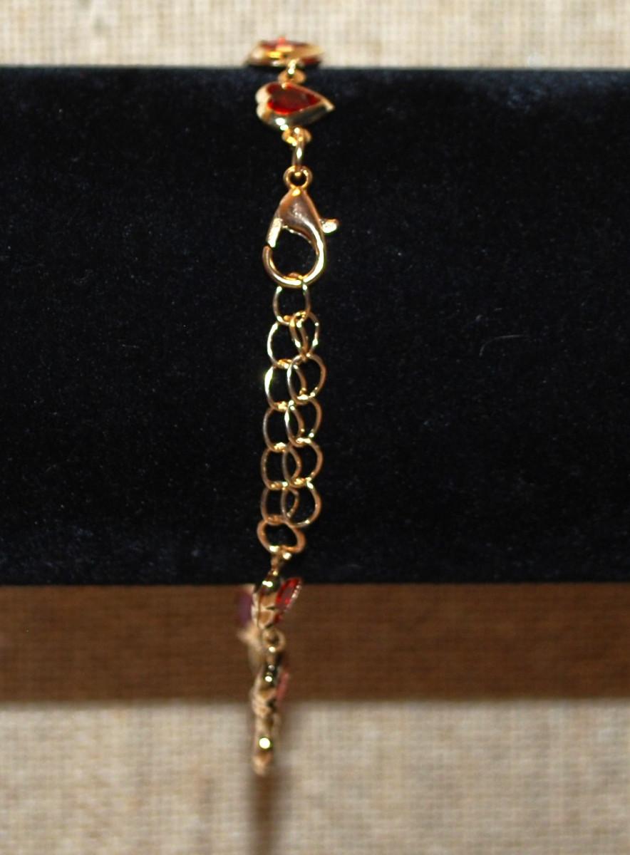 12 Multicolor Hearts Bracelet with Gold Tone Surrounds & Chain 7" Circumference