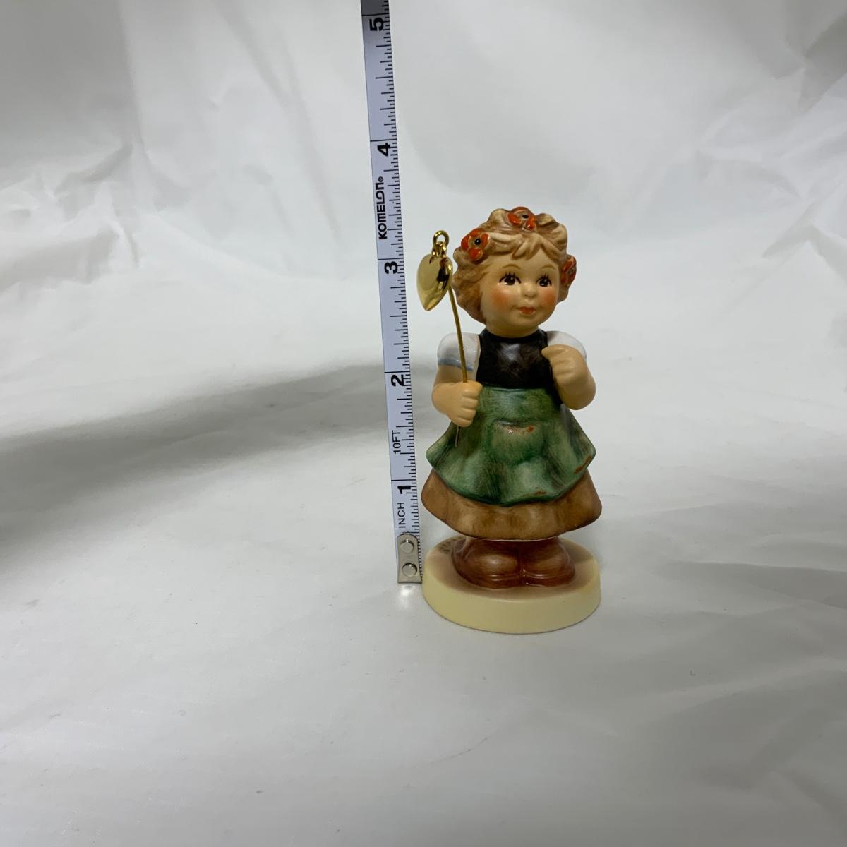 Another adorable little Hummel girl with a heart charm this time! My Lucky Heart, Hum 2298, 3 1/4” tall. Club Exclusive dated 2011. Comes with original box. Please see photos for details and condition. - No Cracks, Chips or Crazing Noted. ::: Shipping is available on this lot. If you require shipping you must let us know at the close of the auction. We will coordinate with you after the item has been won. Shipping fees will include insurance up to or exceeding the value of all items being mailed. If you have any questions regarding this lot please contact the auctioneer either via this website, by direct email or by phone. PICK UP TIMES and other important information can be found in the TERMS and DESCRIPTION of the auction. Please take a look for pertinent information. Thanks!