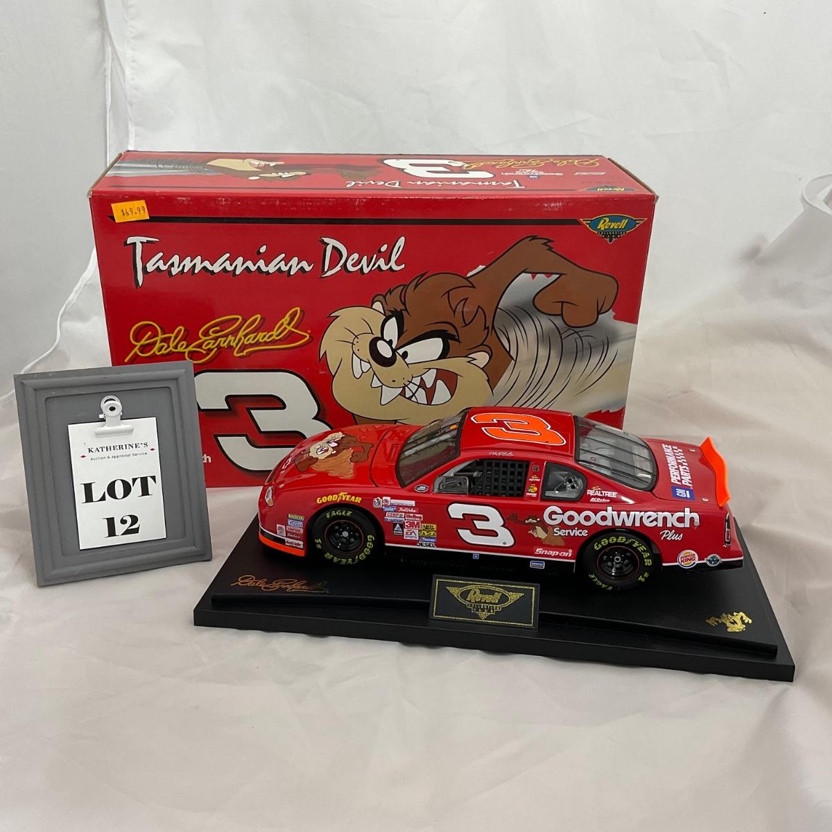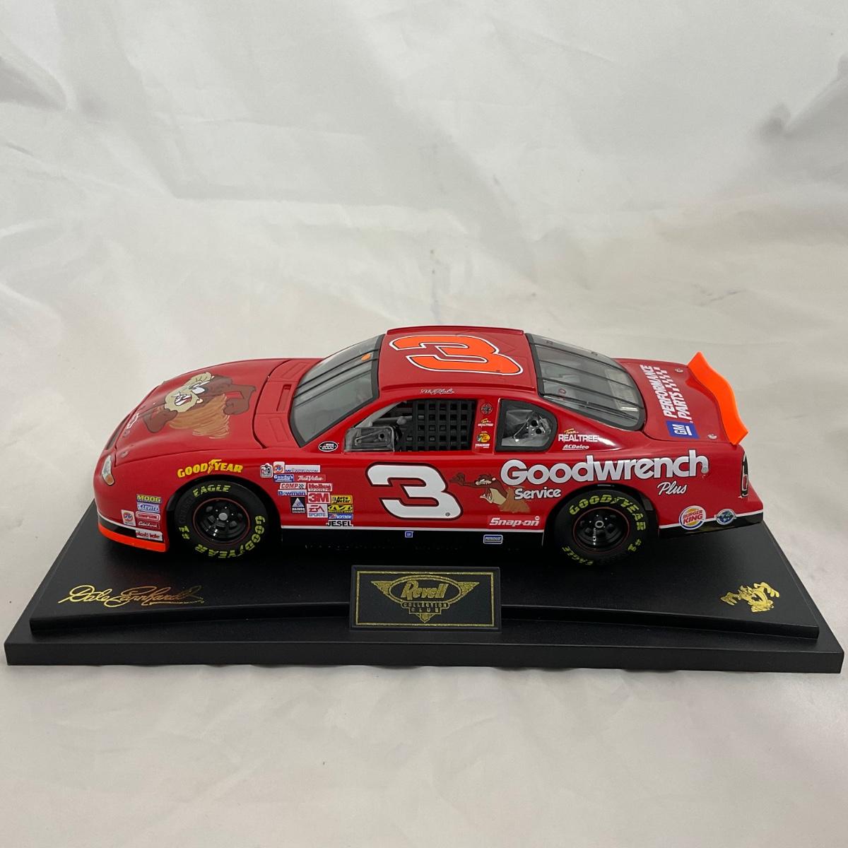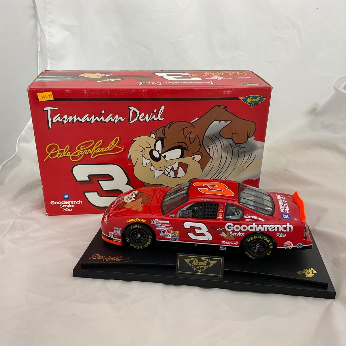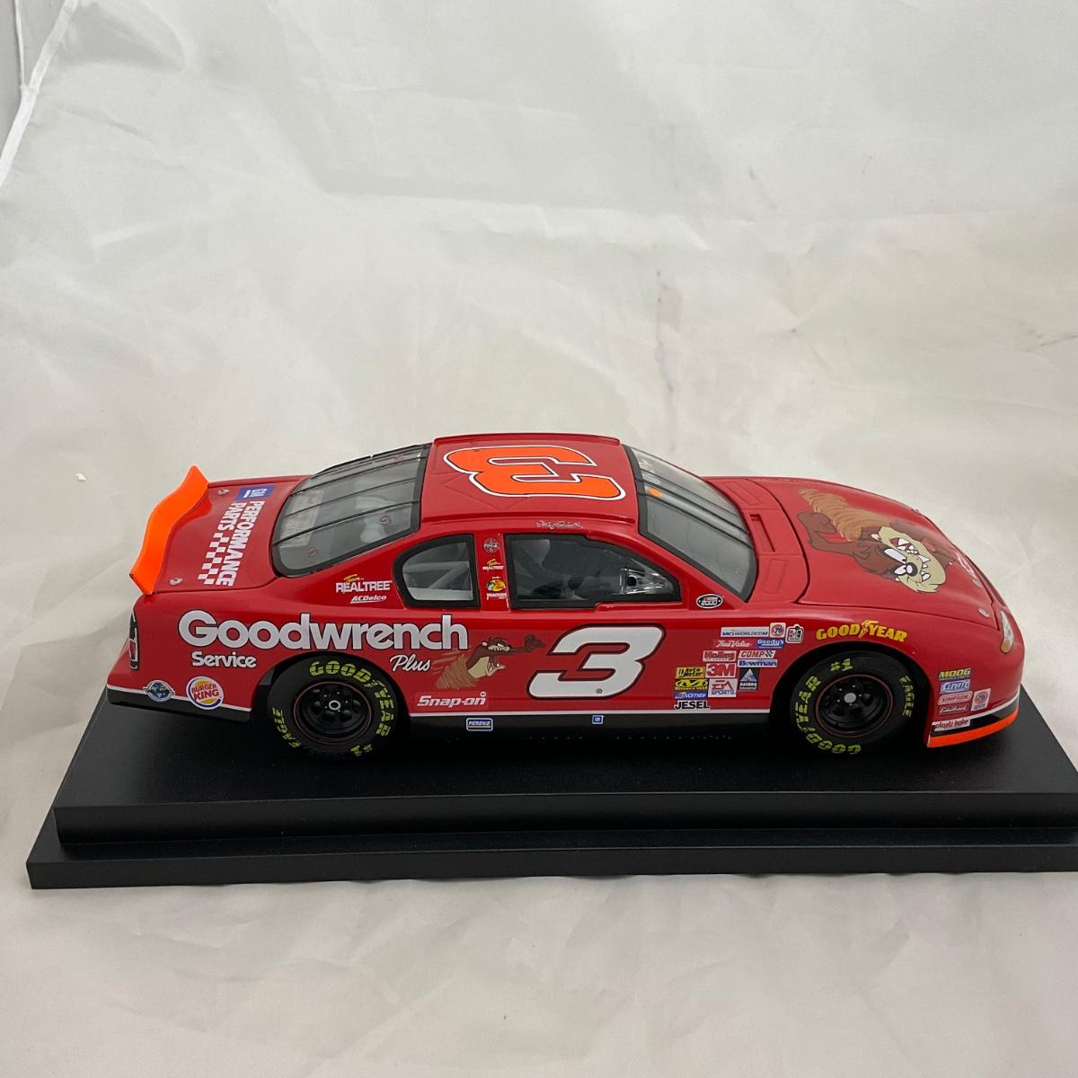 One NASCAR die cast 1:18 scale 2000 Goodwrench and Taz Chevrolet Monte Carlo figure. With attached base. Dale Earnhardt Sr. Does not come with a Certificate of Authenticity. Please see photos for details and condition. ::: Shipping is available on this lot. If you require shipping you must let us know at the close of the auction. We will coordinate with you after the item has been won. Shipping fees will include insurance up to or exceeding the value of all items being mailed. If you have any questions regarding this lot please contact the auctioneer either via this website, by direct email or by phone. PICK UP TIMES and other important information can be found in the TERMS and DESCRIPTION of the auction. Please take a look for pertinent information. Thanks!