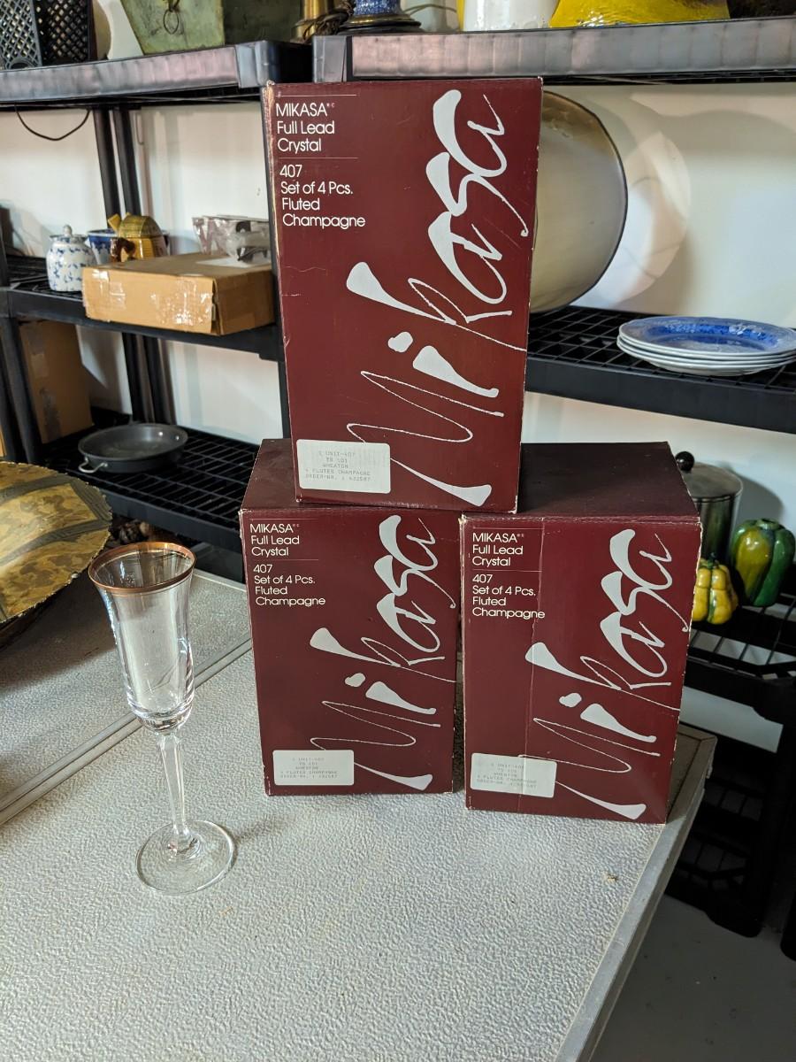 12 NIB Mikasa Crystal Champagne Glasses