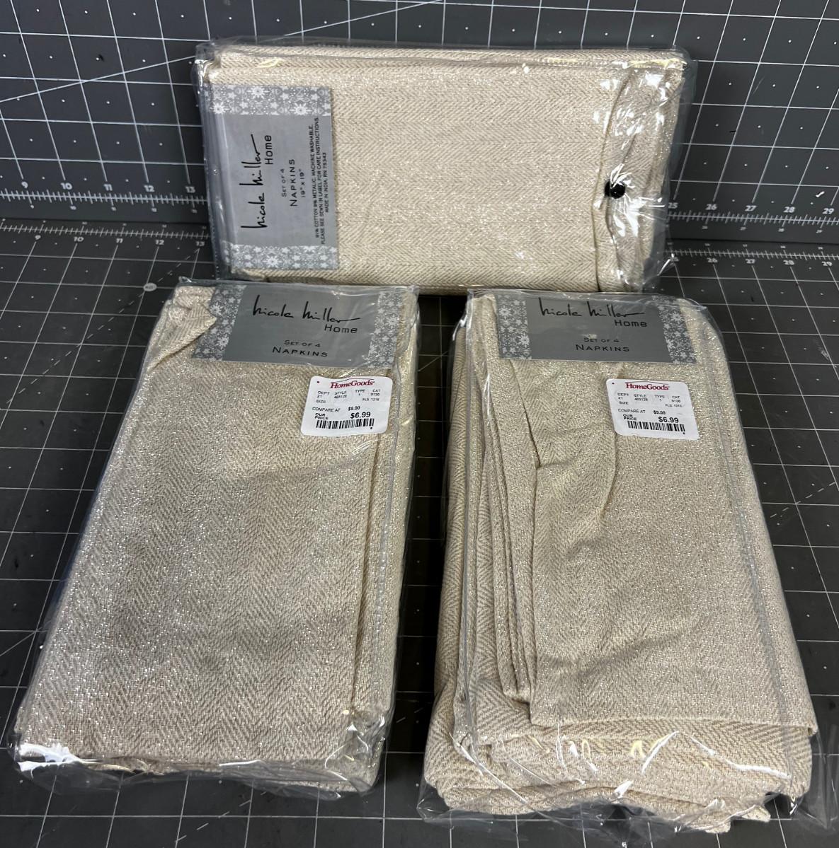 12 Nicole Miller Sparkle Silver Napkins NEW