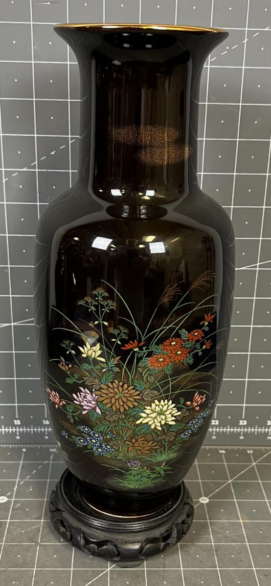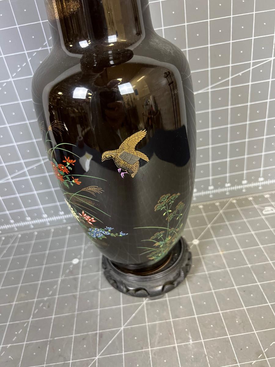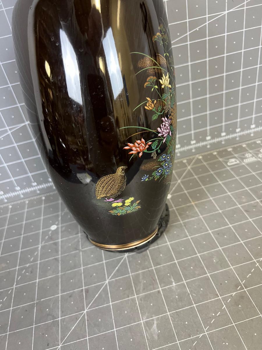12" Oteri OMC Japanese Pottery Circa 1970 VASE Larger Quail & Flower