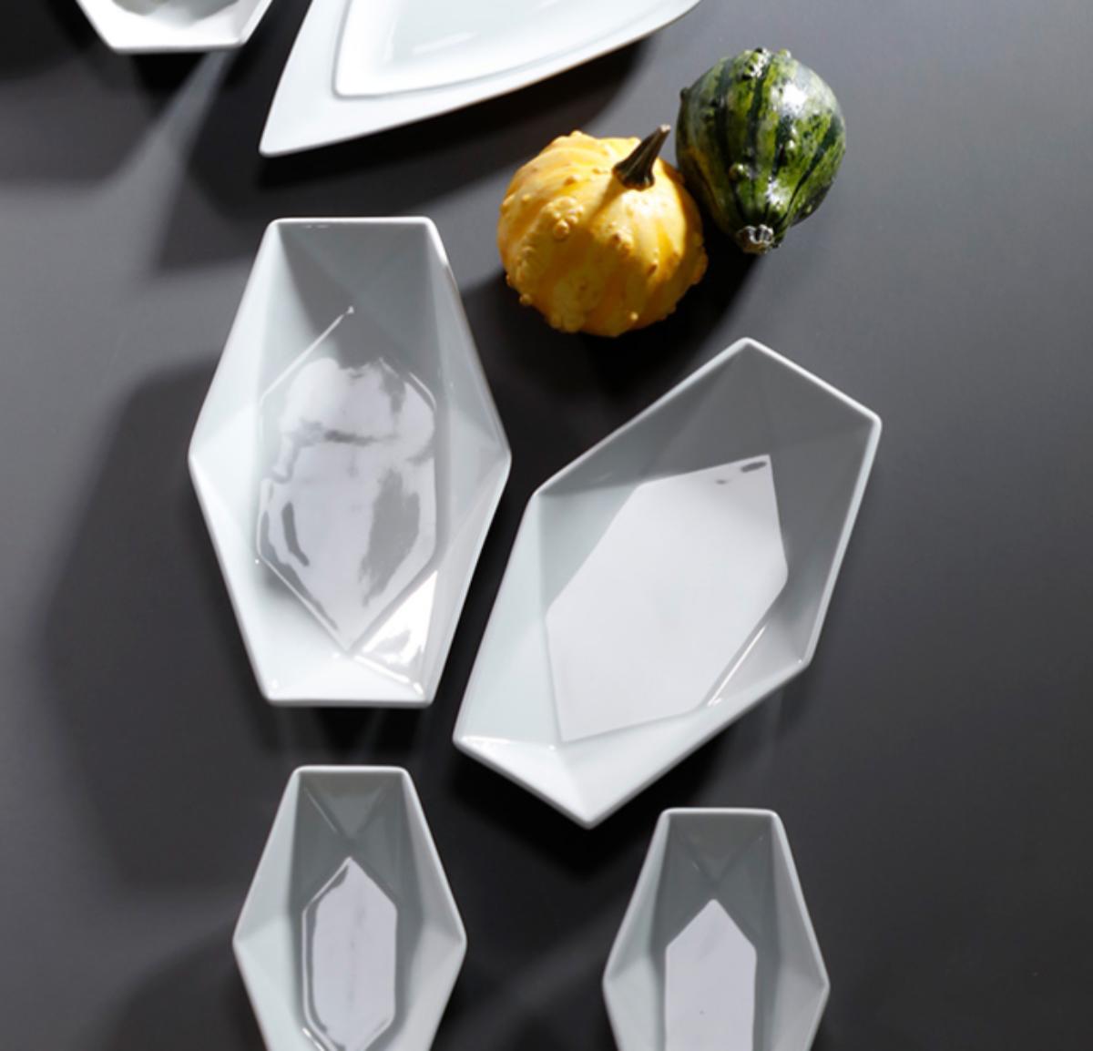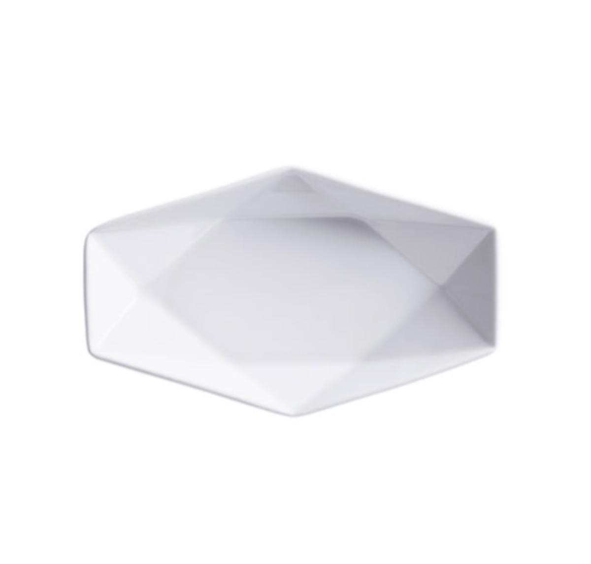 12 Pack White Ceramic Faceted Gemstone Shaped Serving Dip Plates Platters - 6" x 3.5"