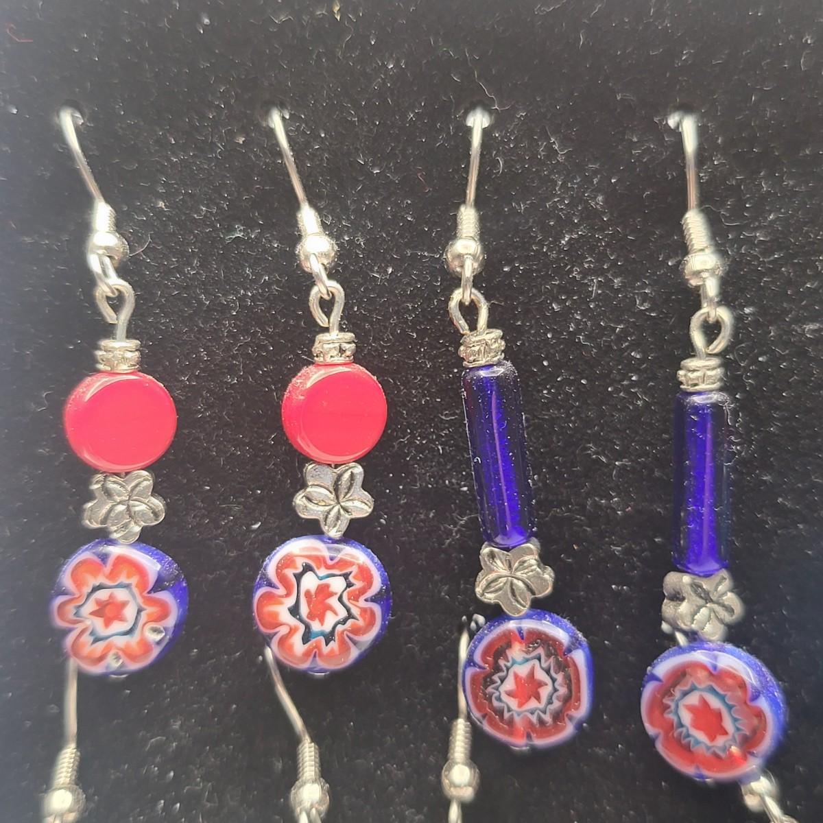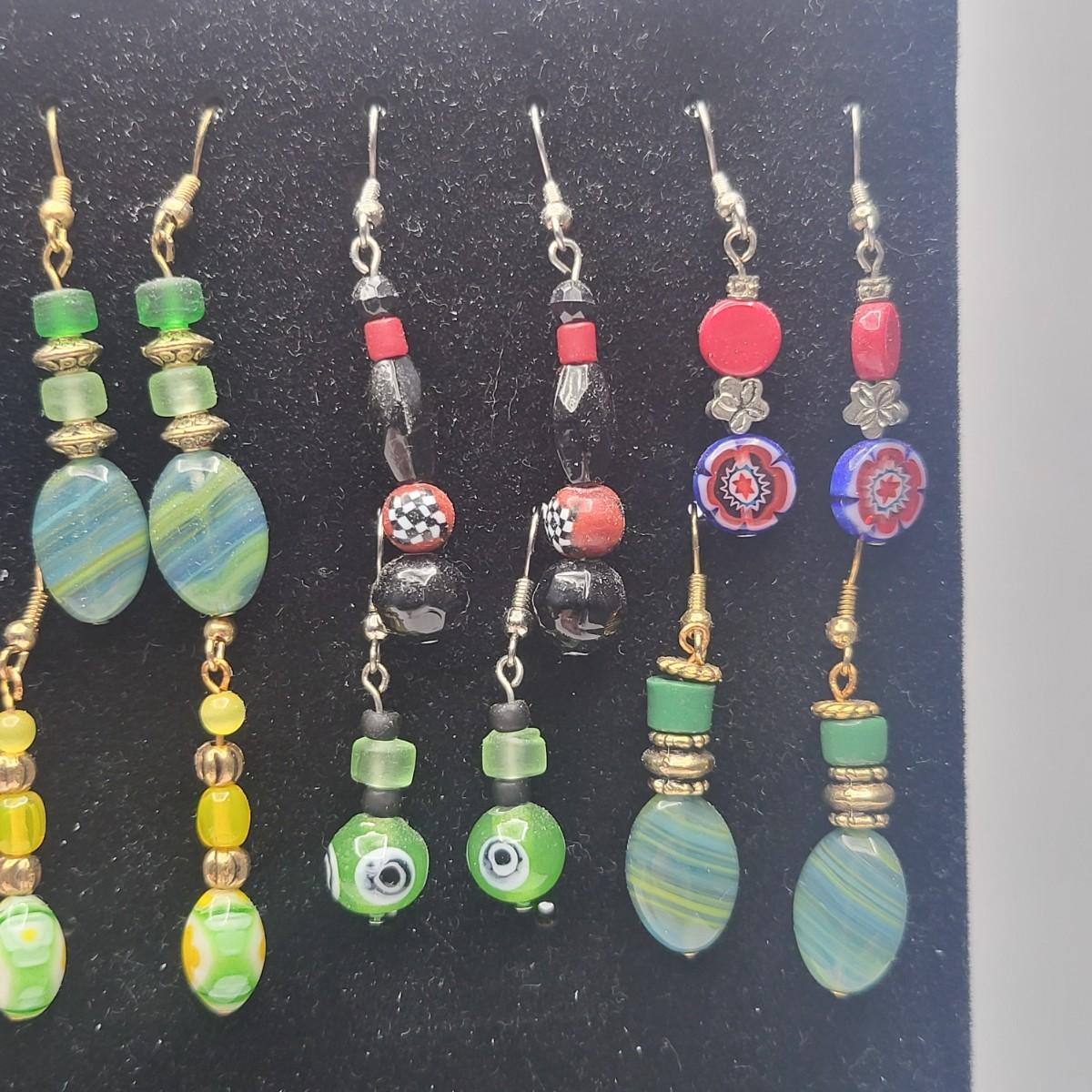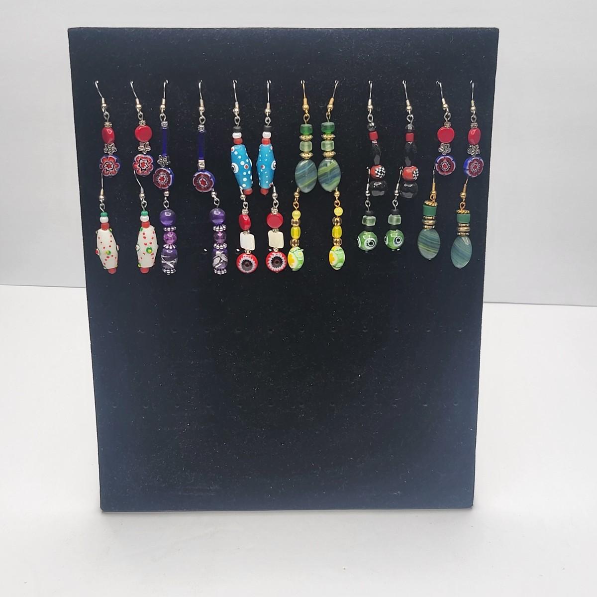 12 Pairs Handmade Art Glass Bead Earrings on Display Stand