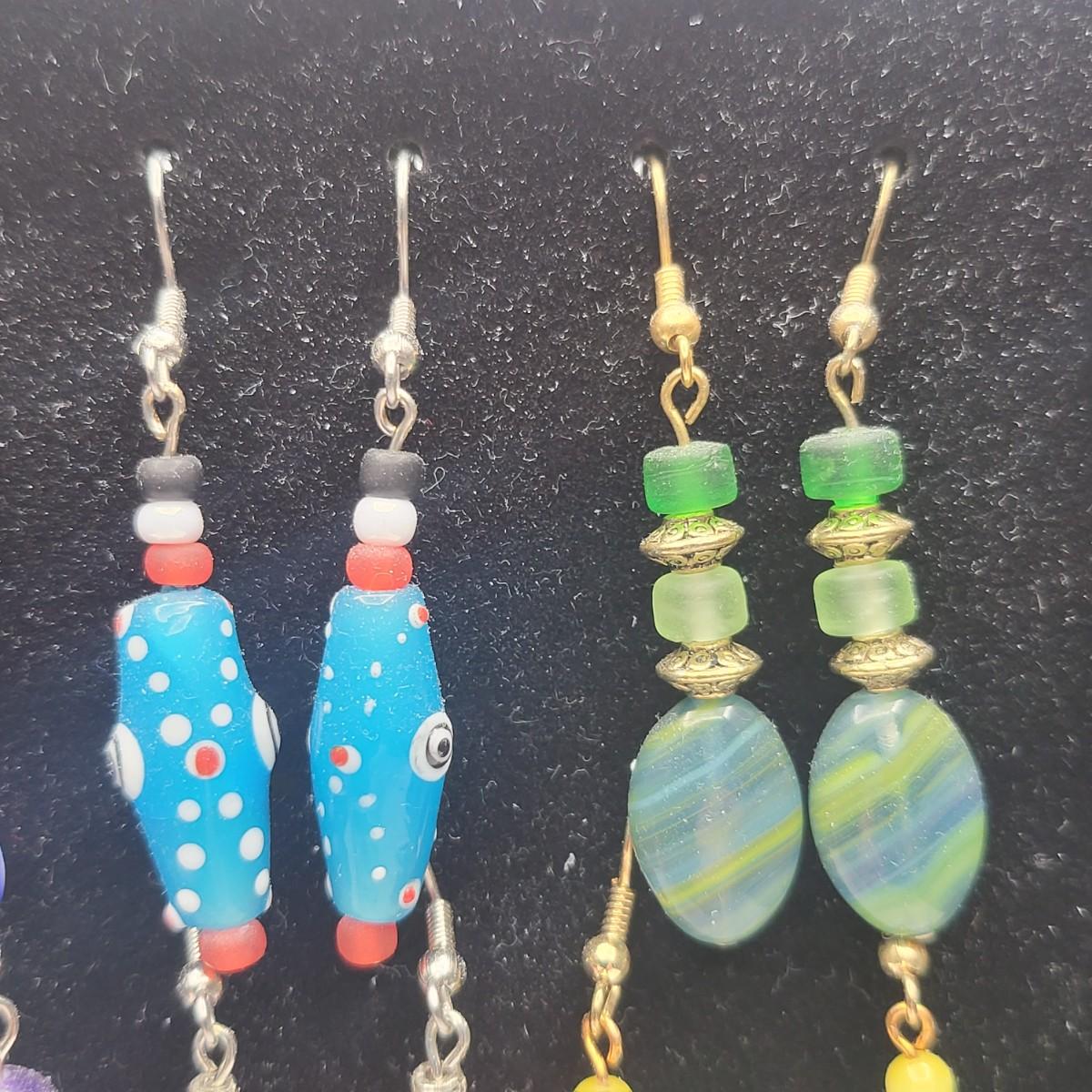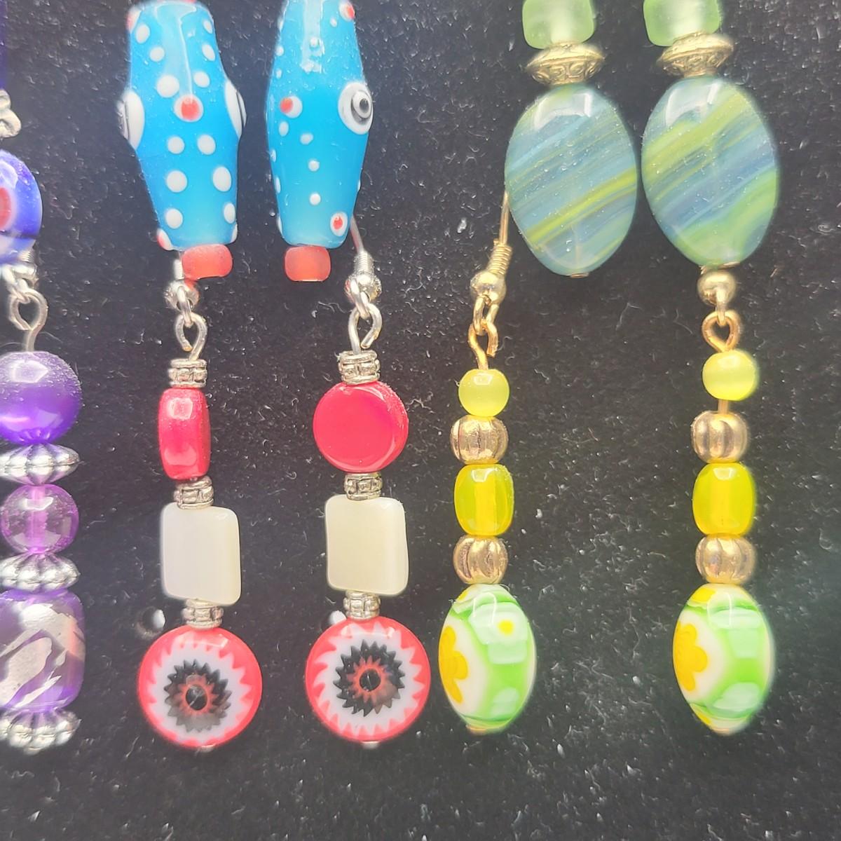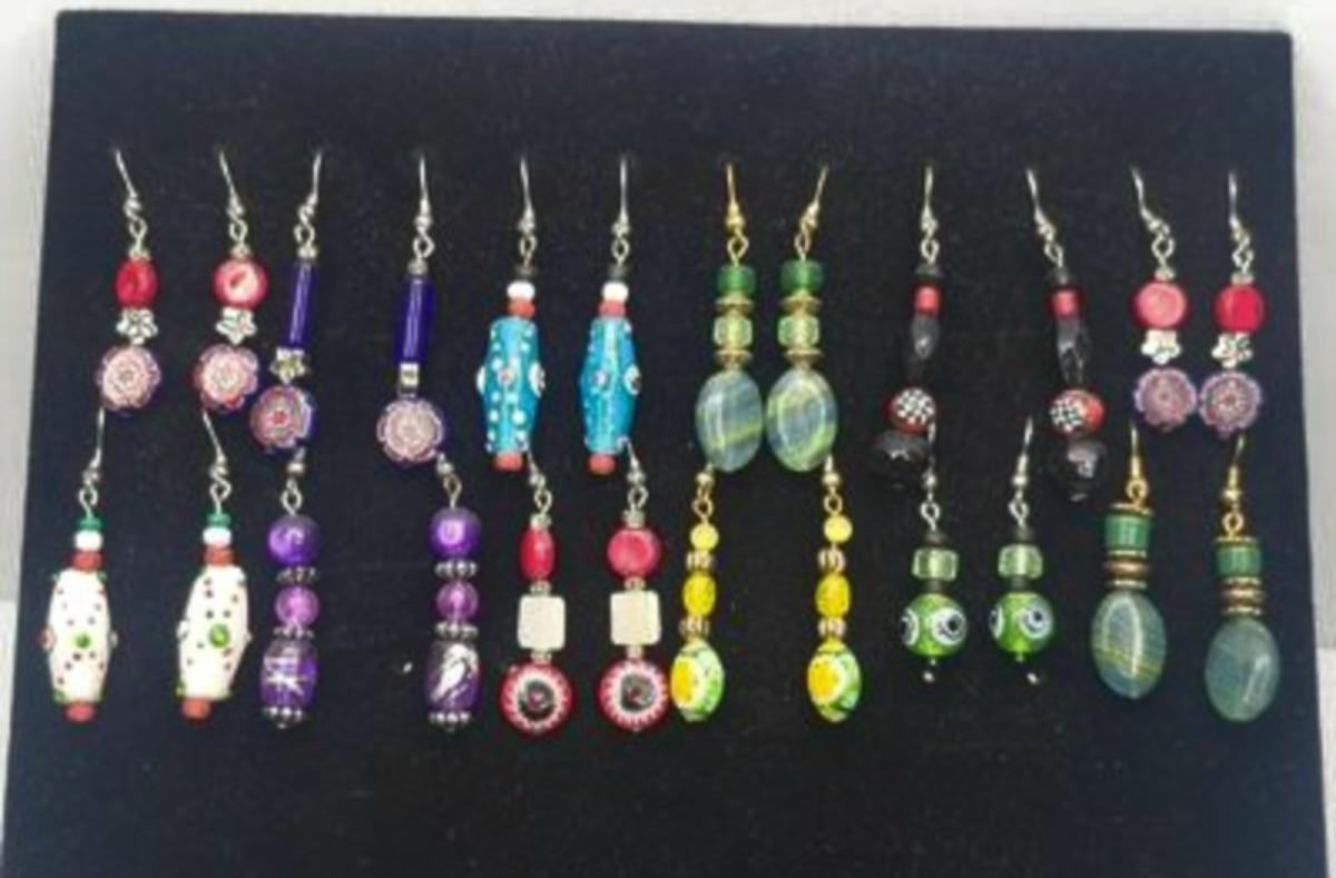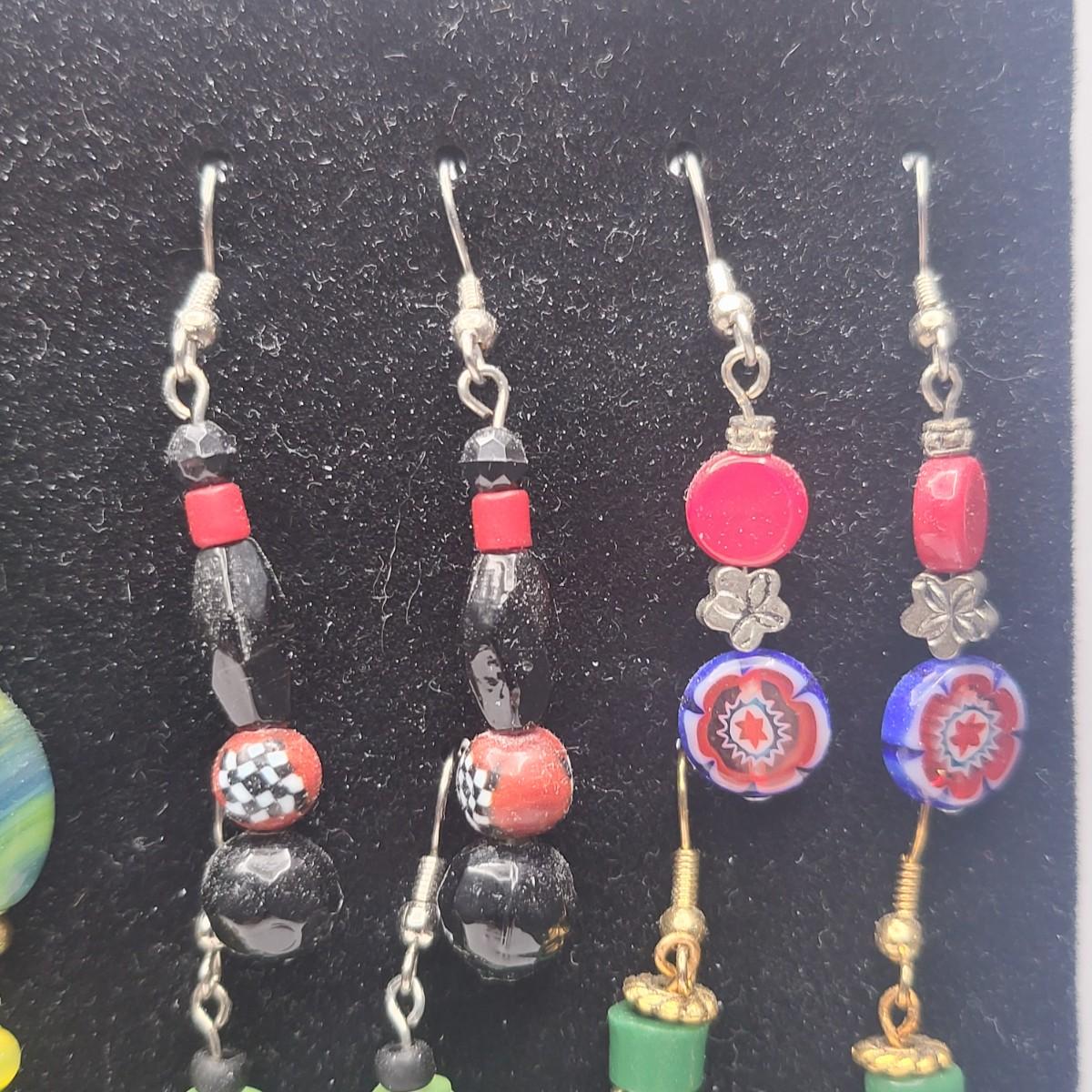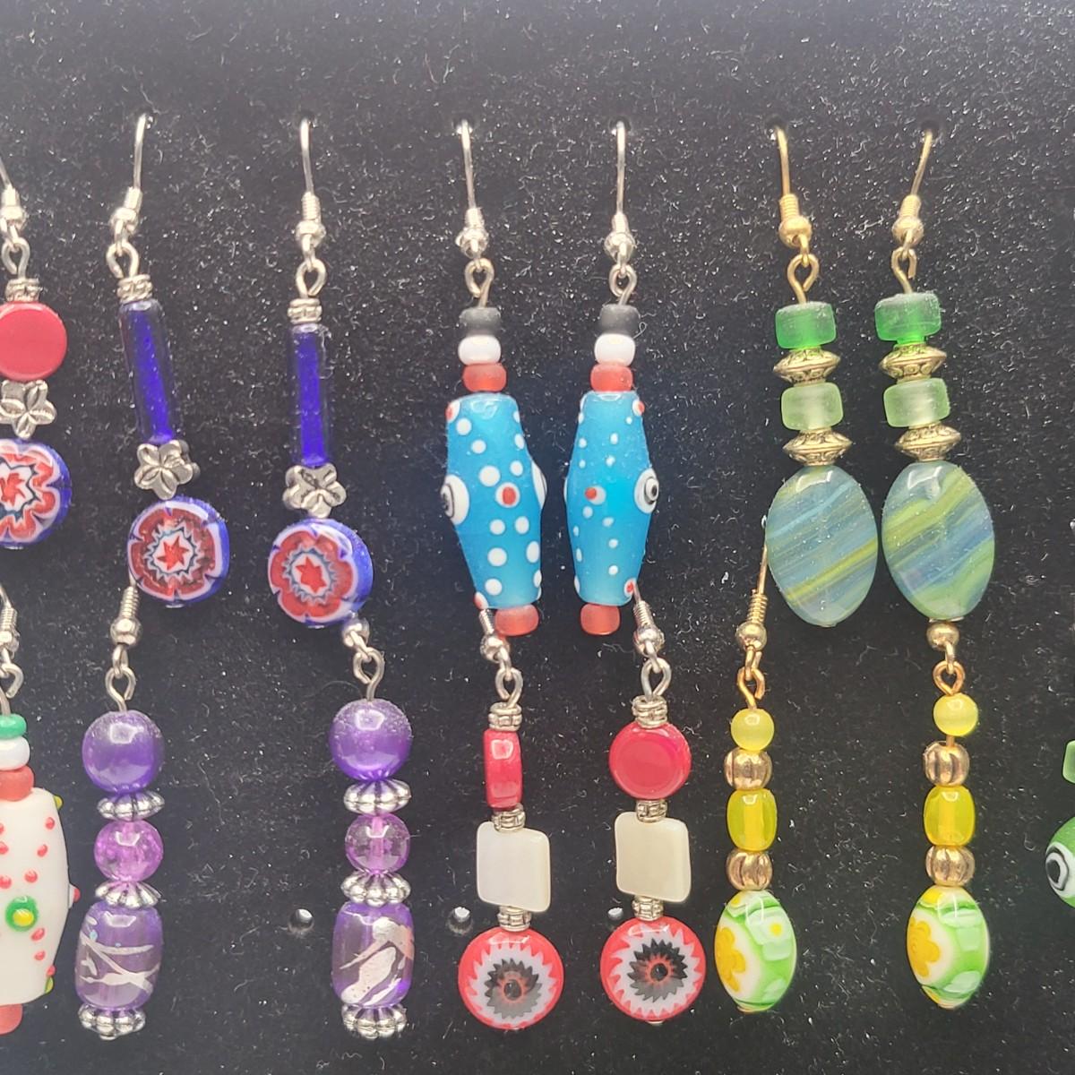 12 Pairs Handmade Art Glass Bead Earrings & Display Stand