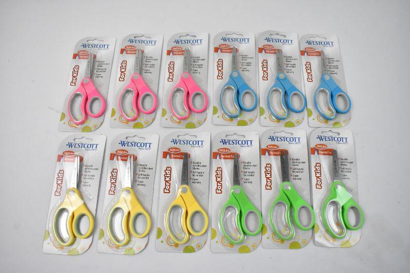 12 Pairs of Kids Scissors: Pink, Blue, Yellow, and Green - New