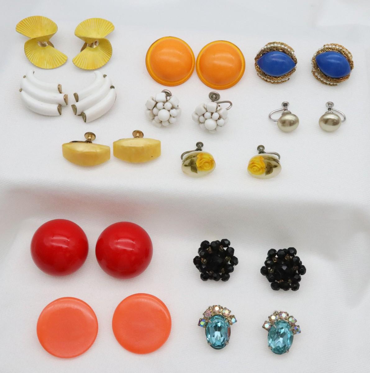 12 Pairs of Vintage Clip On Earrings