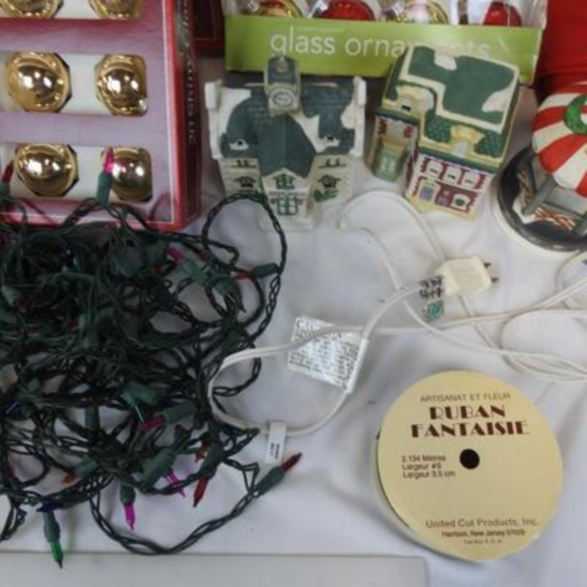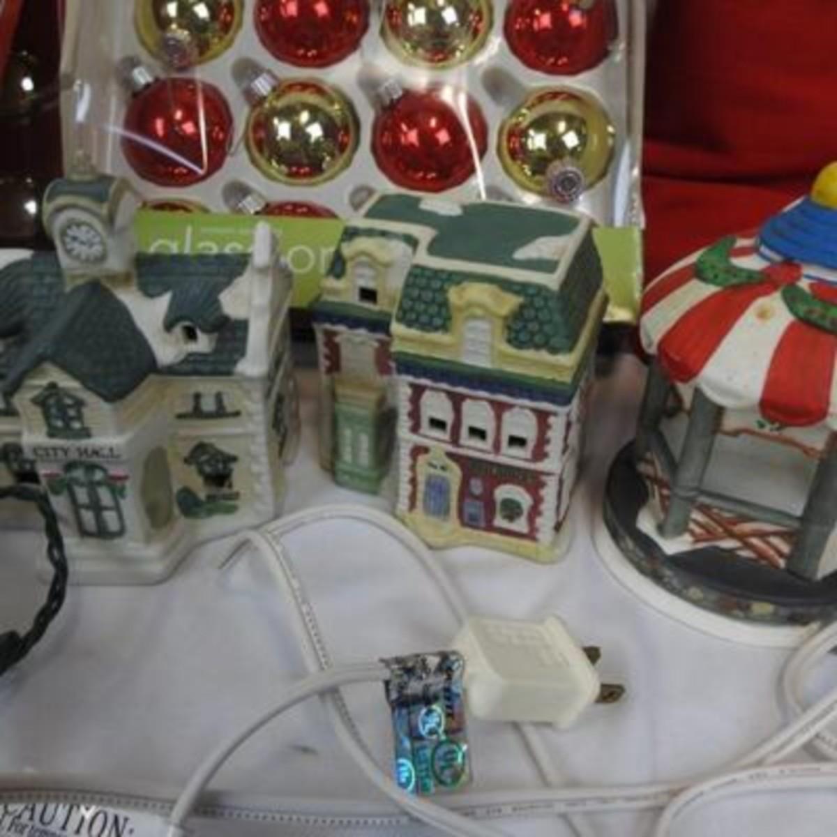 12 pc Christmas: Shiny Glass Ornaments, Light Up Houses, Lights