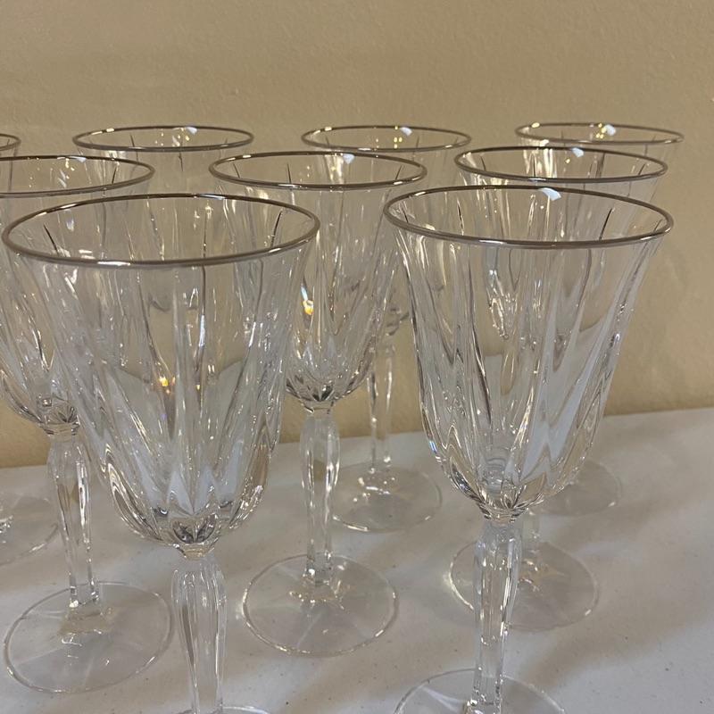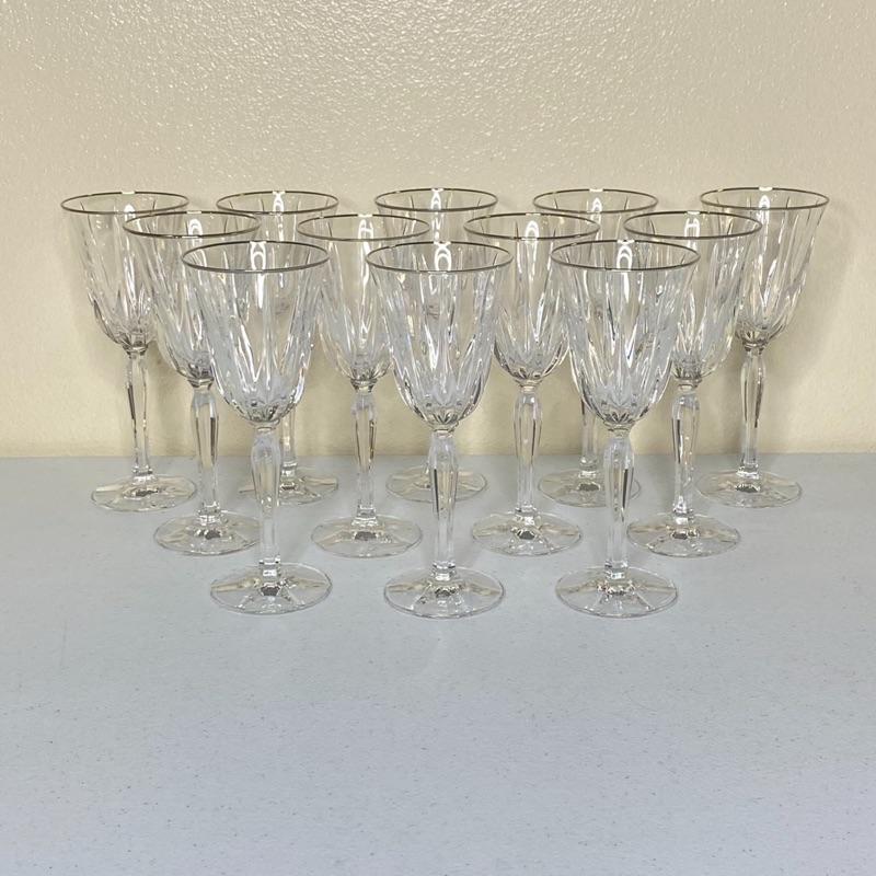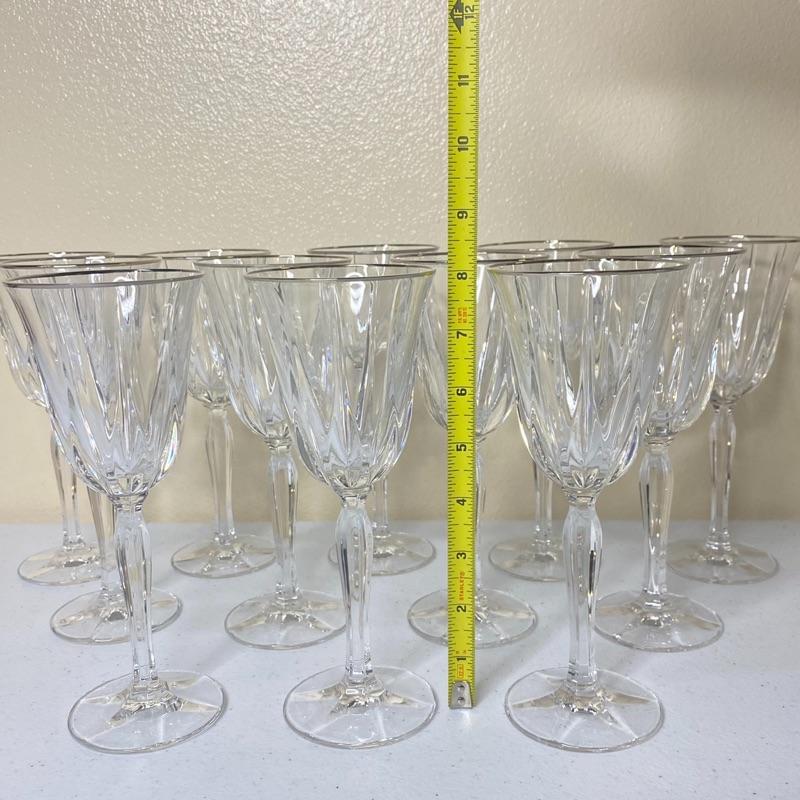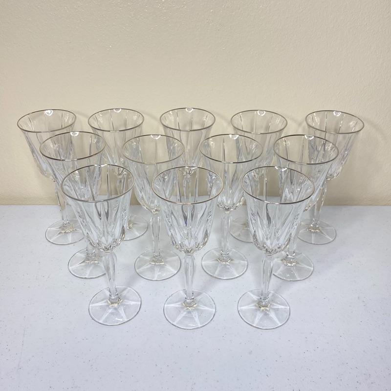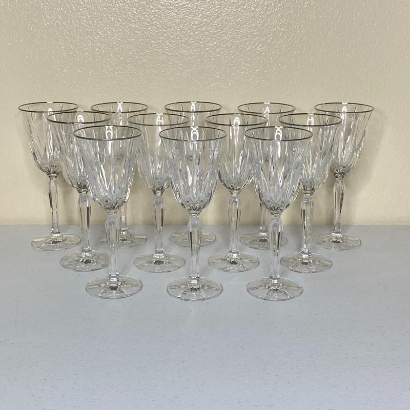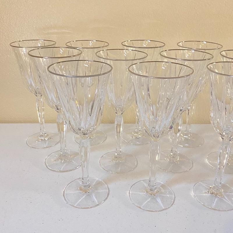 12 Pc Crystal Goblets with Silver Rims