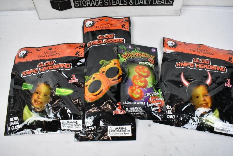 12 pc Halloween: 4 Small Stuffed Animals, 4 Small LED Sticks, 4 Small Glow items - New