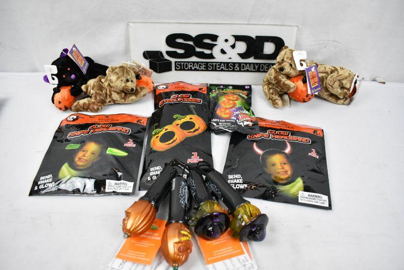 12 pc Halloween: Small Stuffed Animals, Small LED Sticks, Small Glow items - New